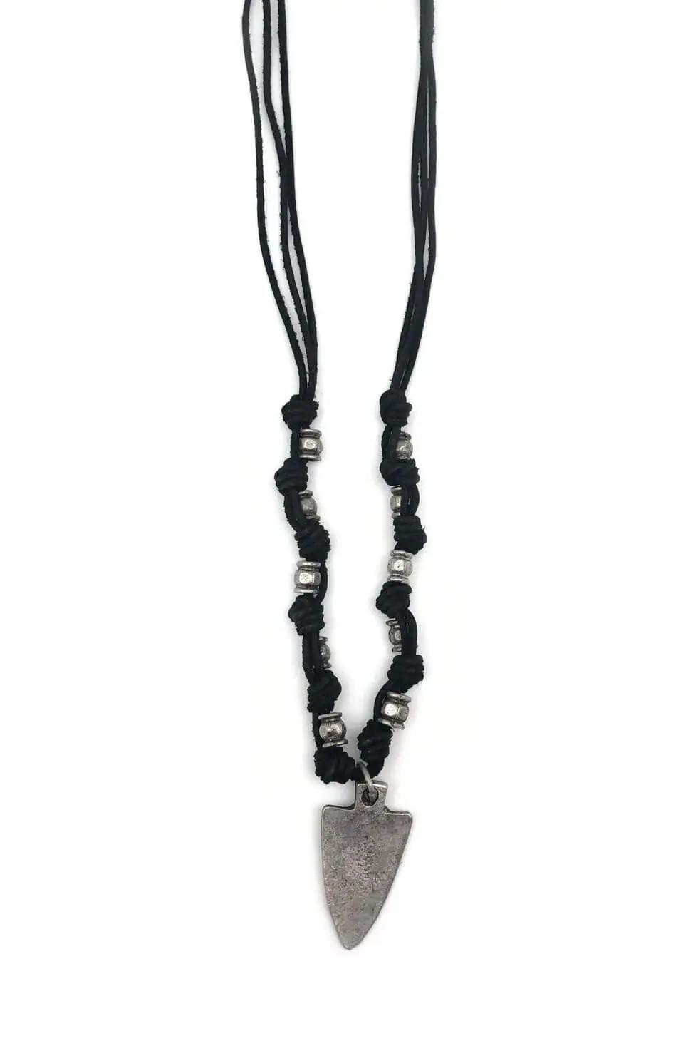 Handcrafted in India, the Aadi Arrowhead Knotted Leather Necklace by Anju Jewelry features an iron arrowhead on a leather chain.