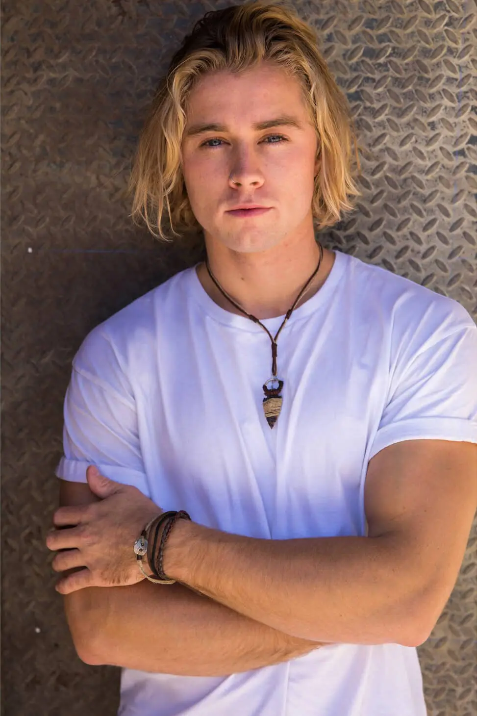 Handcrafted in India, the Aadi Jute Arrowhead Necklace by Anju Jewelry features an iron anchor wrapped in jute on a geniune leather chain.