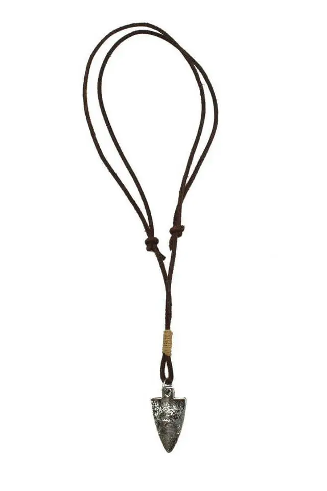 Handcrafted in India, the Aadi Silver Arrowhead Leather Necklace by Anju Jewelry is made from geniune leather, jute, and iron.