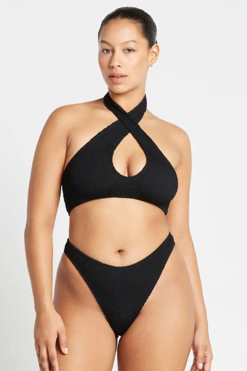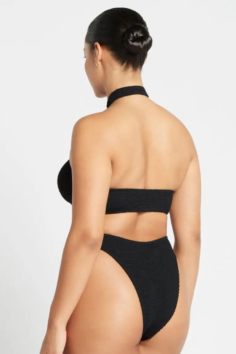 The Christy Brief from Bound by Bond-Eye Australia has a high cut and high waistline. Bound’s signature ribbed seersucker fabric forms to your body, giving you a perfect fit.
