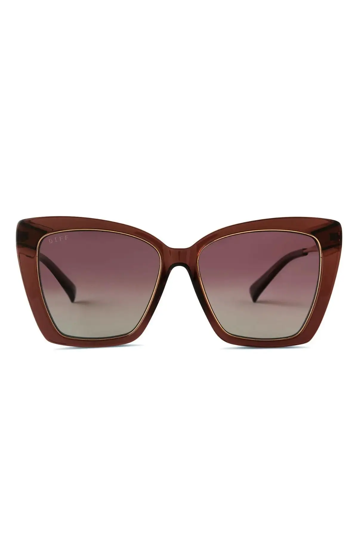 Becky IV features metal inlay around the lens, slightly-oversized fit and shine finish on frame. Includes travel case and cleaning cloth.