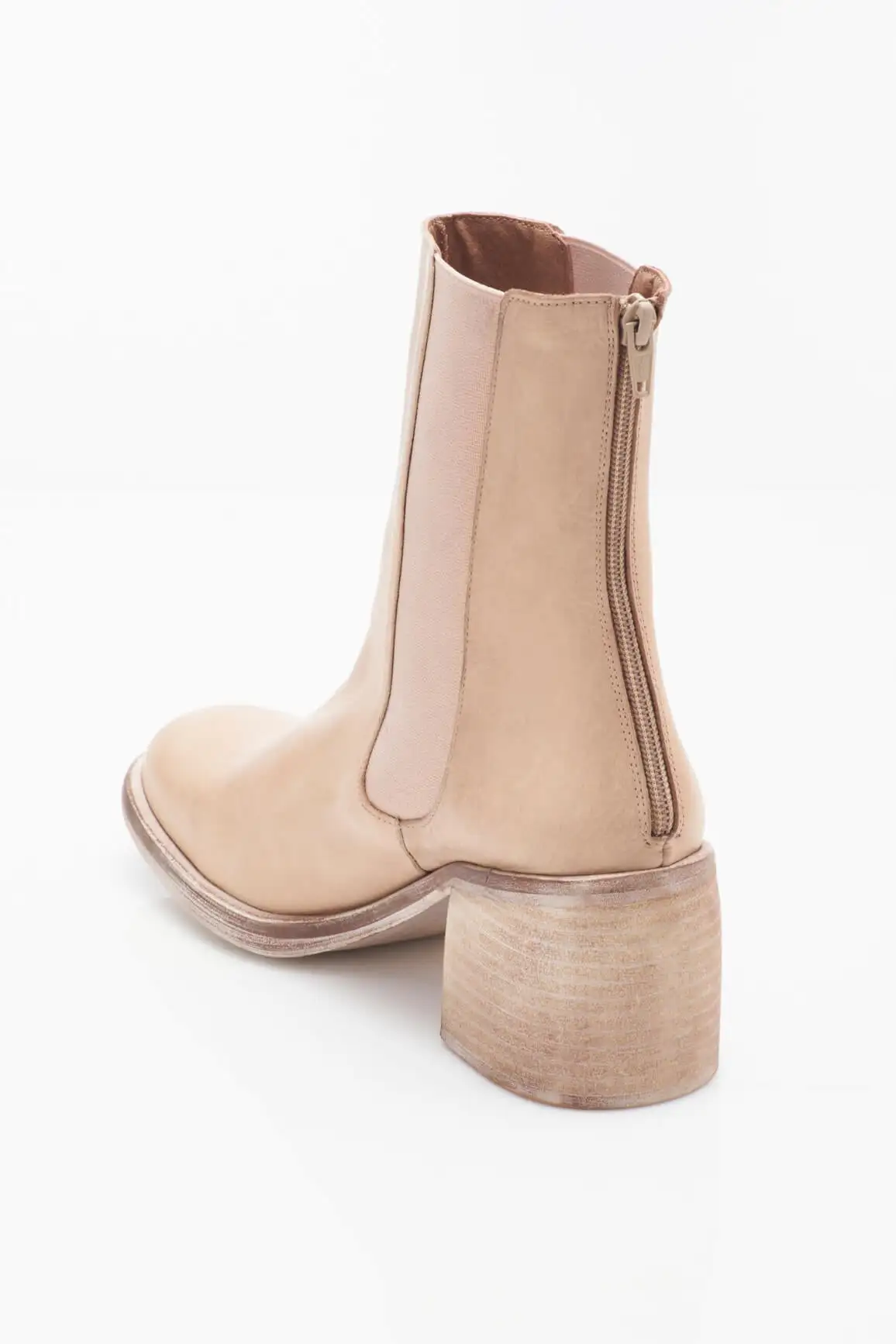 The Chelsea Boot by Free People feature a stacked heel and elastic side accents.