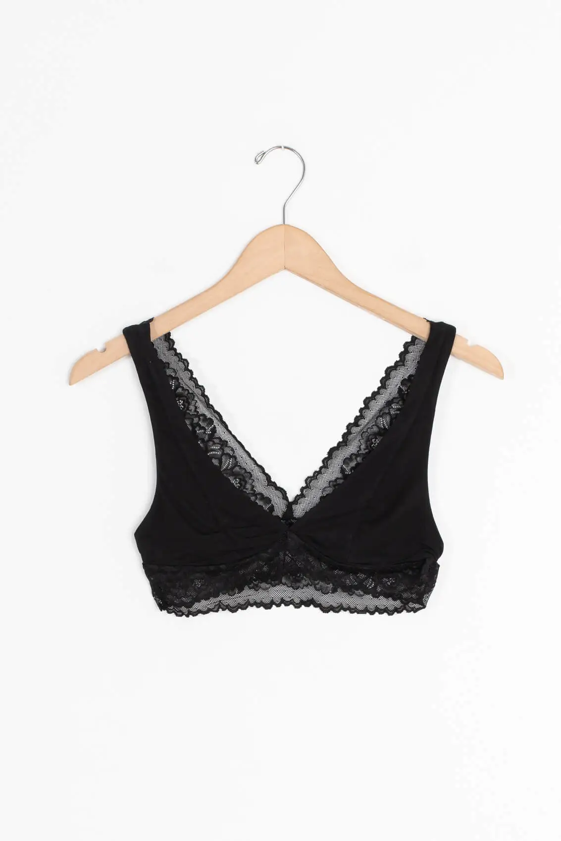 A true top-drawer necessity, this femme bralette is featured in a classic triangle silhouette with seamed cup detailing and lace piecing for the perfect base layer.