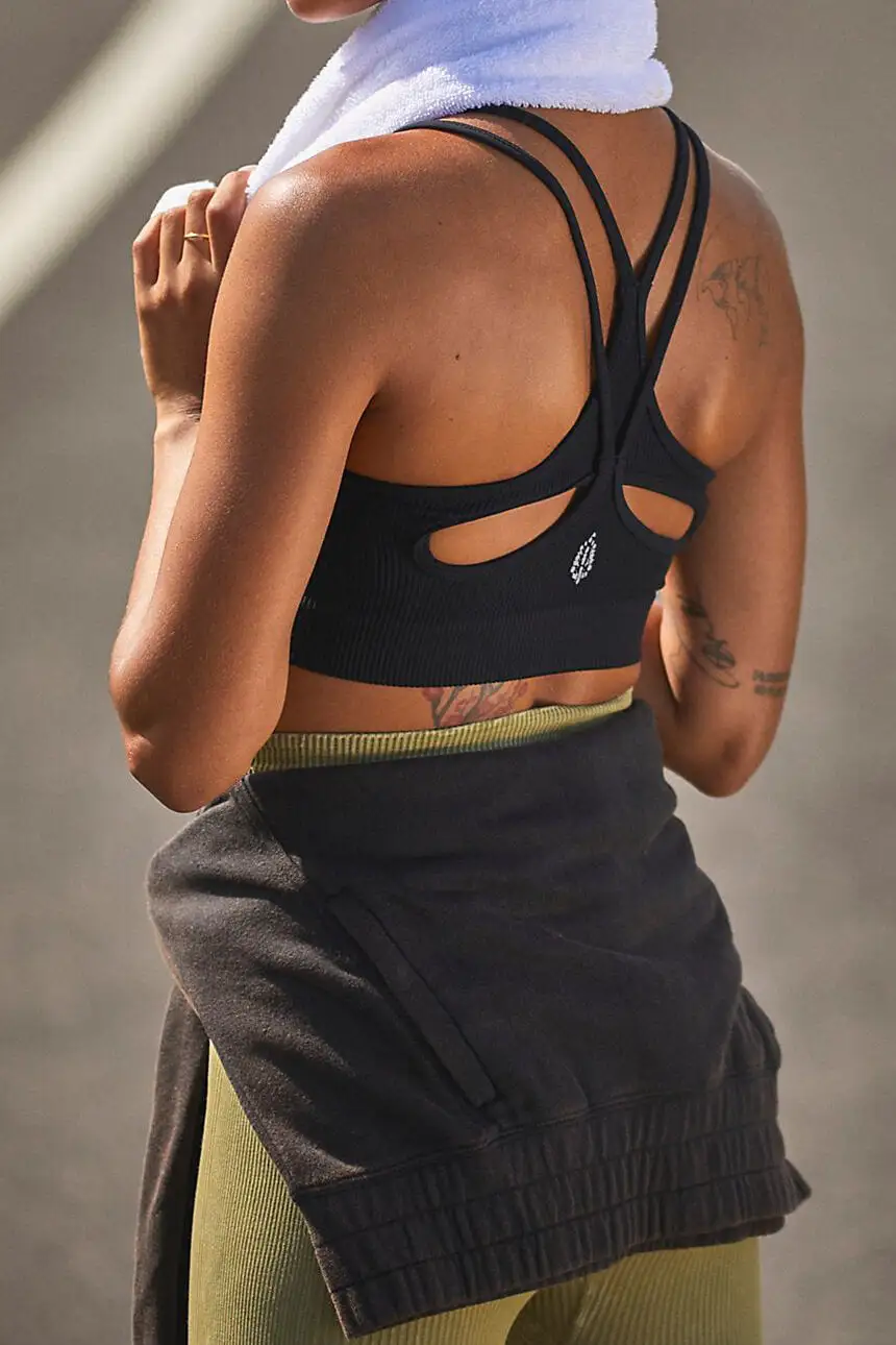 Workout in style with our Free Throw Bralette. Featuring a multi-strap ribbed sports bra that’s soft to the touch and provides the perfect support when working out or practicing a new yoga sequence. Style with high rise workout leggings for a comfortable yet trendy outfit. Perfect for workout out, doing yoga or lounging around the house.