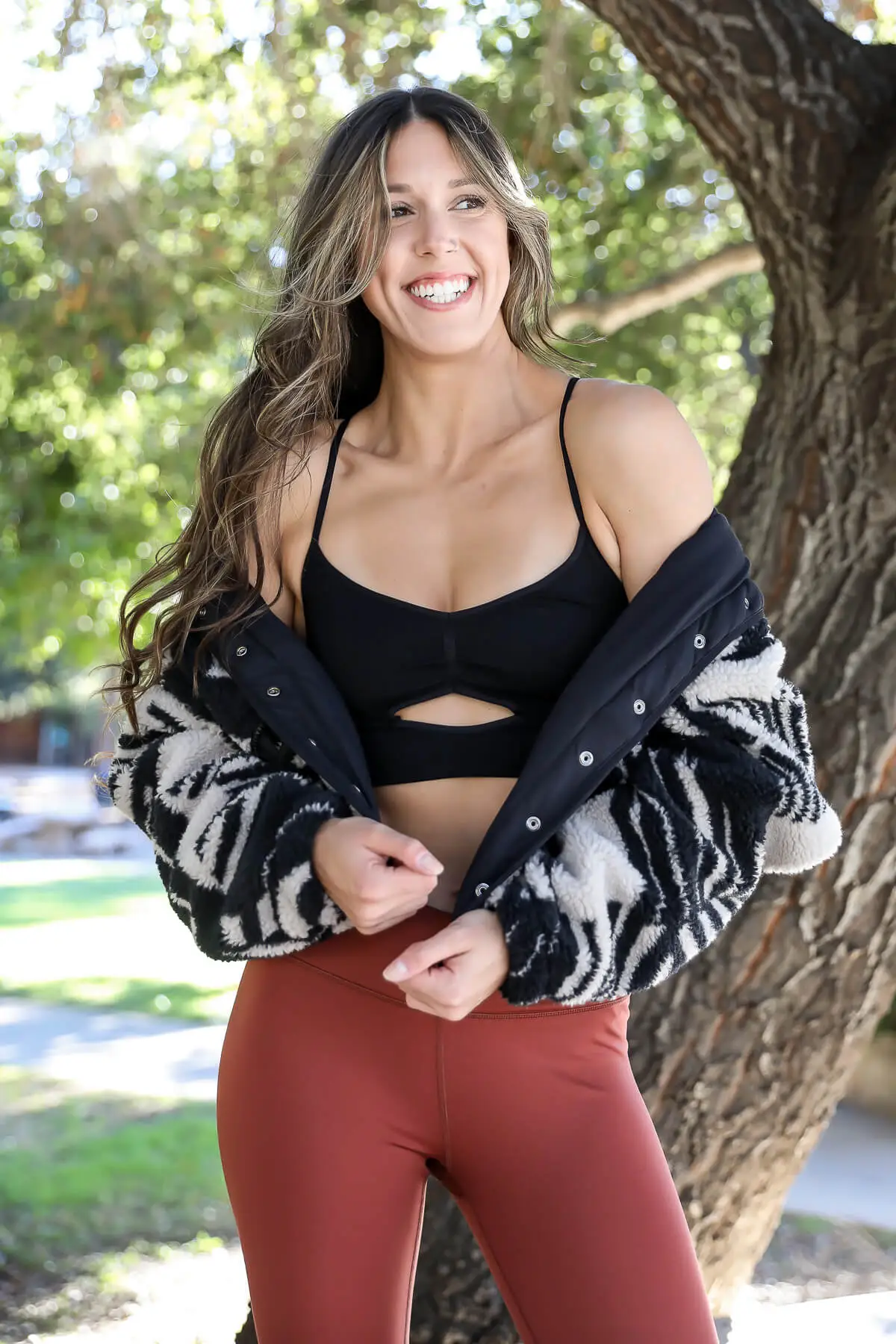 Shoot your shot in the Free Throw Strappy Back Bralette by Free People. This ribbed compression bralette features a cute cut-out at the chest and a bold strappy back that keeps you feeling and looking cool as you work out. Mix and match the neutral colors with your other favorite Free People Activewear.