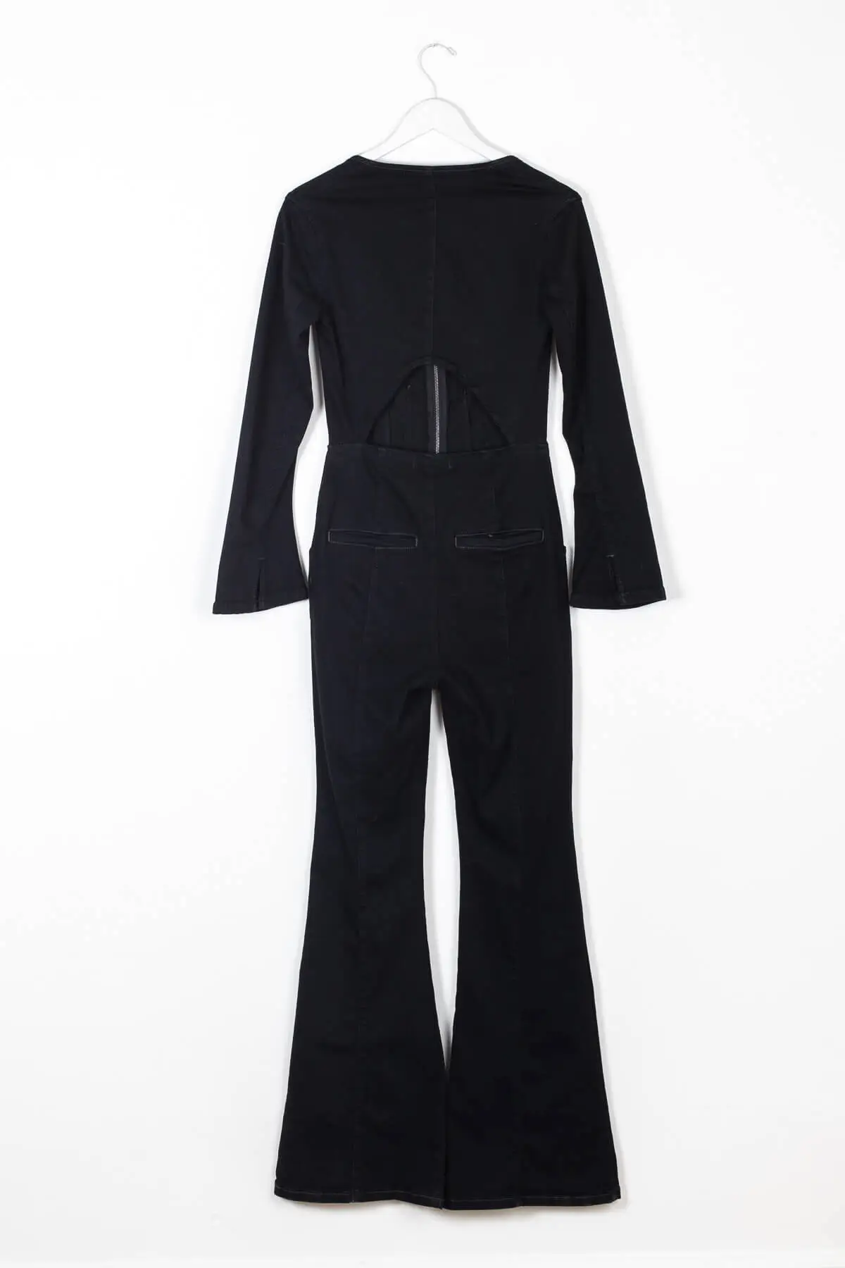 The Karly Jumpsuit by Free People is the perfect instant outfit for any occasion. This piece is slim through the bodice and thigh with a flare leg design and features a sweetheart neckline, zip-up front closure, and cutout detailing at the lower back. Pair with your favorite boots or sneakers for a variety of styling options!