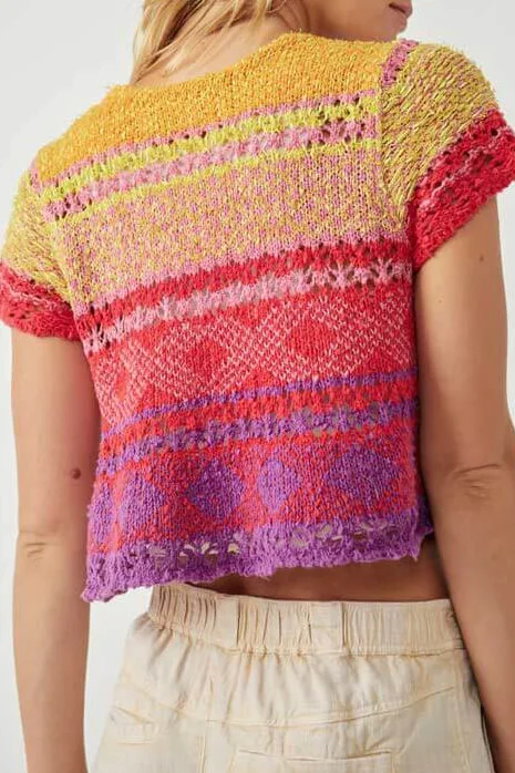 The Lily Sweater Tee by Free People is a bright cap sleeve crochet knit crop.