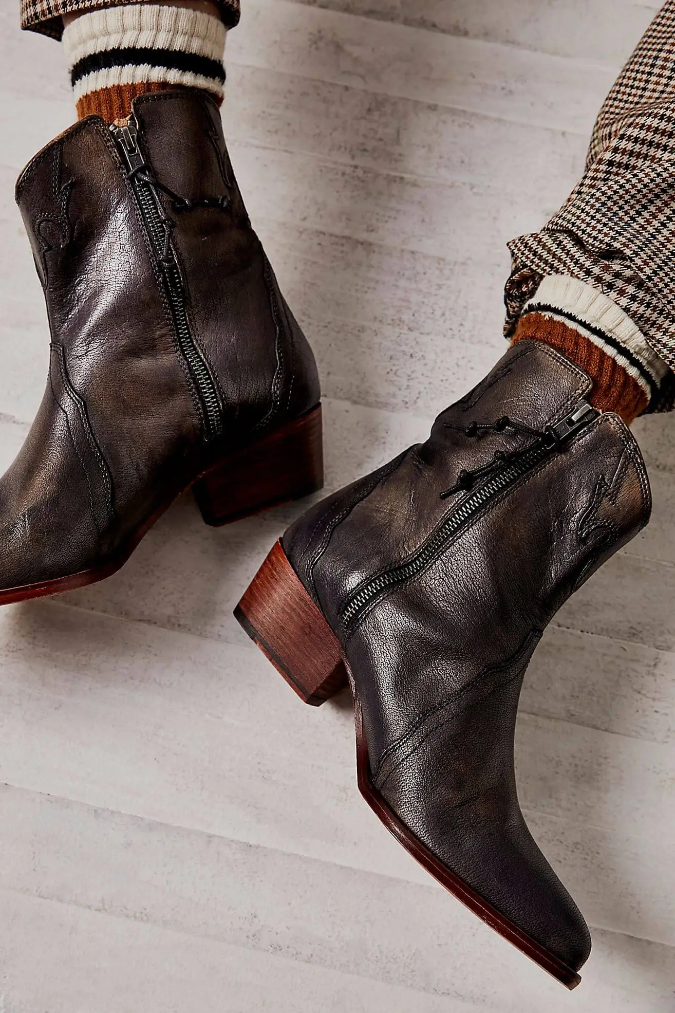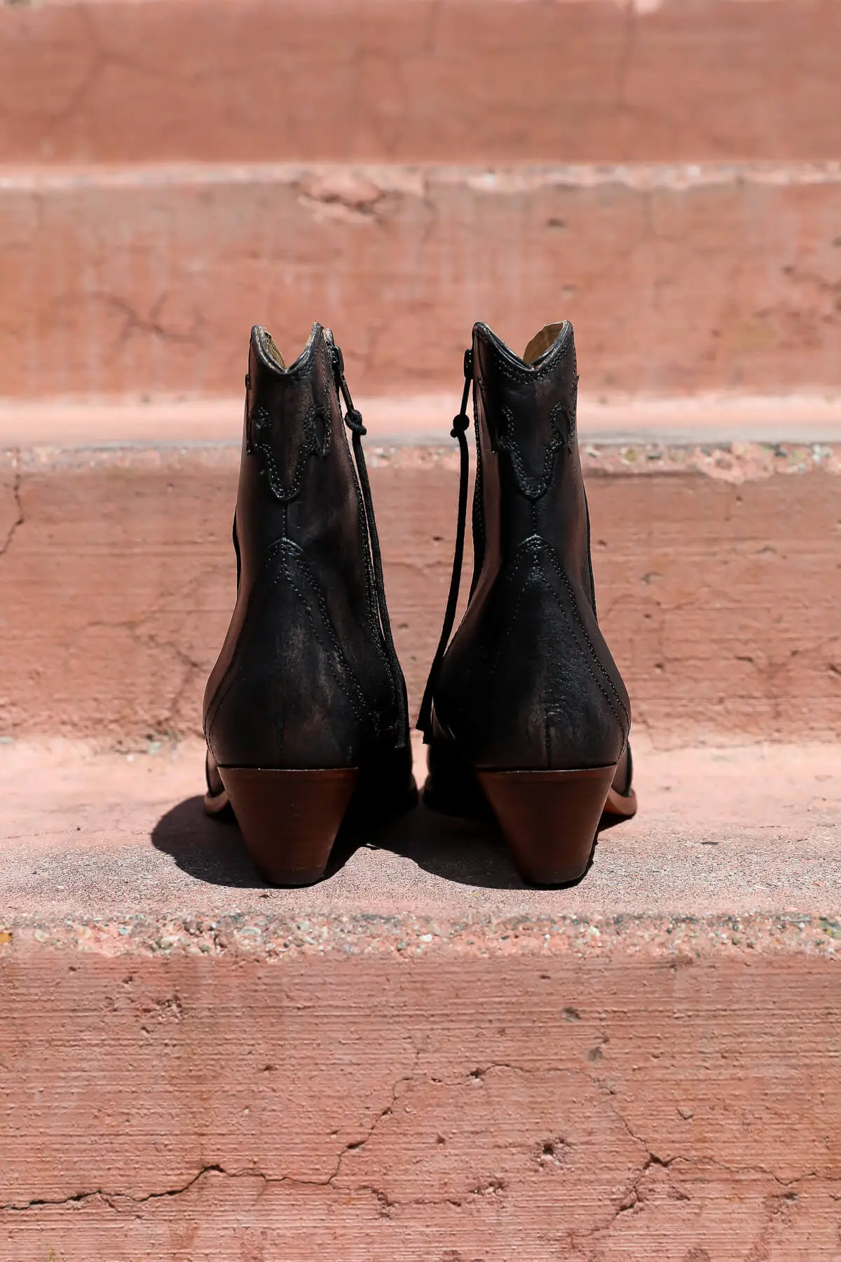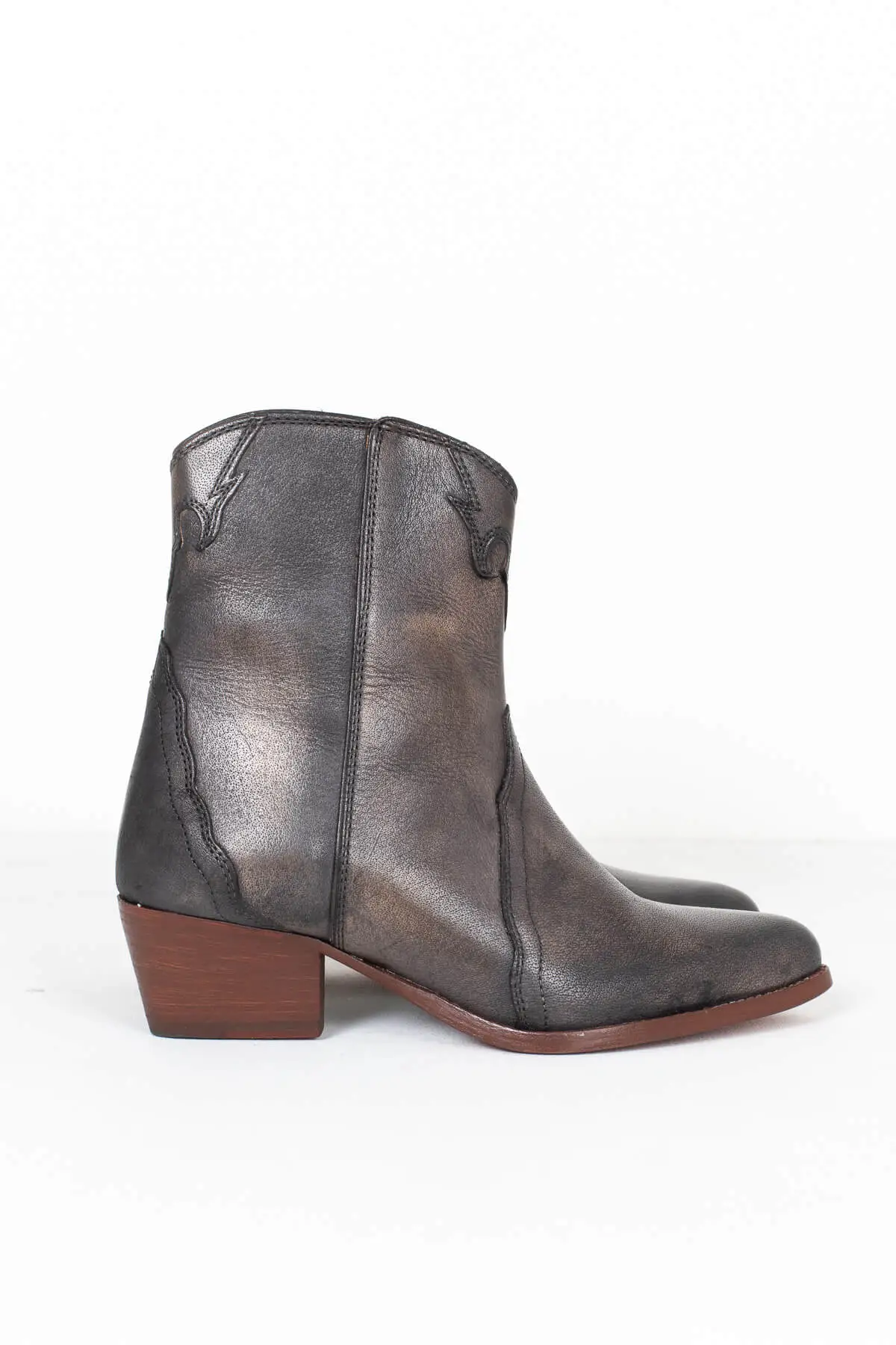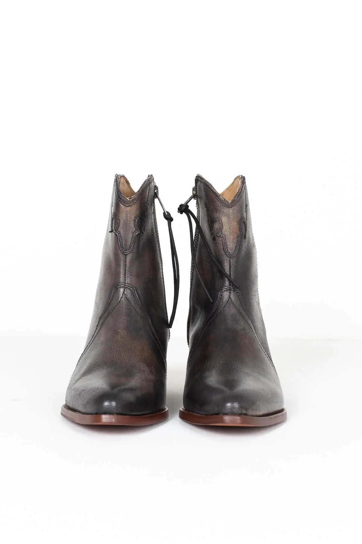 Enjoy our New Frontier Western Boots, by Free People, all year round. Featuring a dark black/brown color with a bronze side zipper and a 2 inch heel. Style with a mini dress or cropped skinny jeans to complete this chic cowgirl look. Perfect for brunch with friends, running errands, wearing on vacation or to music festivals.