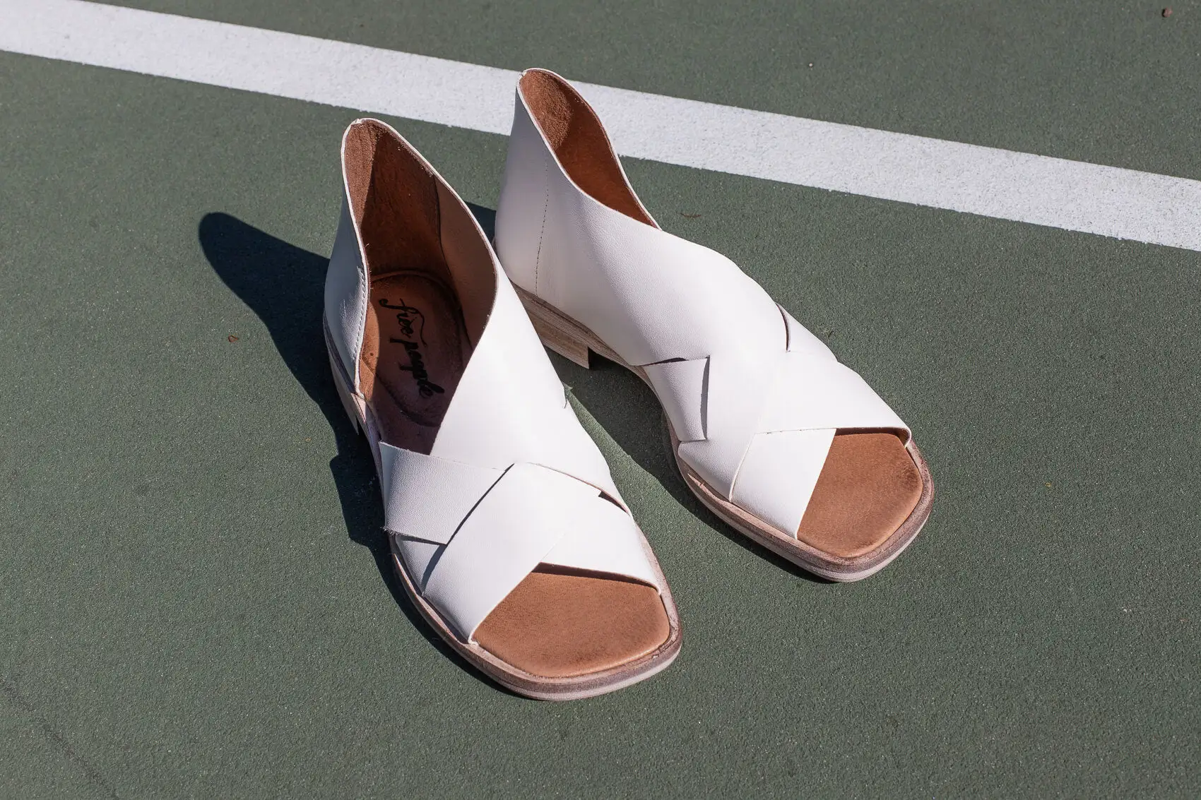 So effortlessly eye-catching, these unique sandals are featured in an open-toe style and soft leather fabrication with crisscross strap detailing, side cutouts, and a minimal stacked heel.
