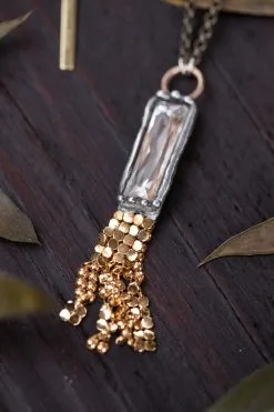 Mikal Winn Brass Dog Tag Crystals Necklace
