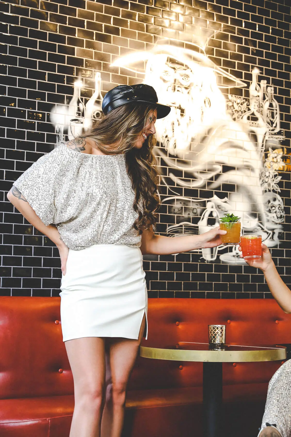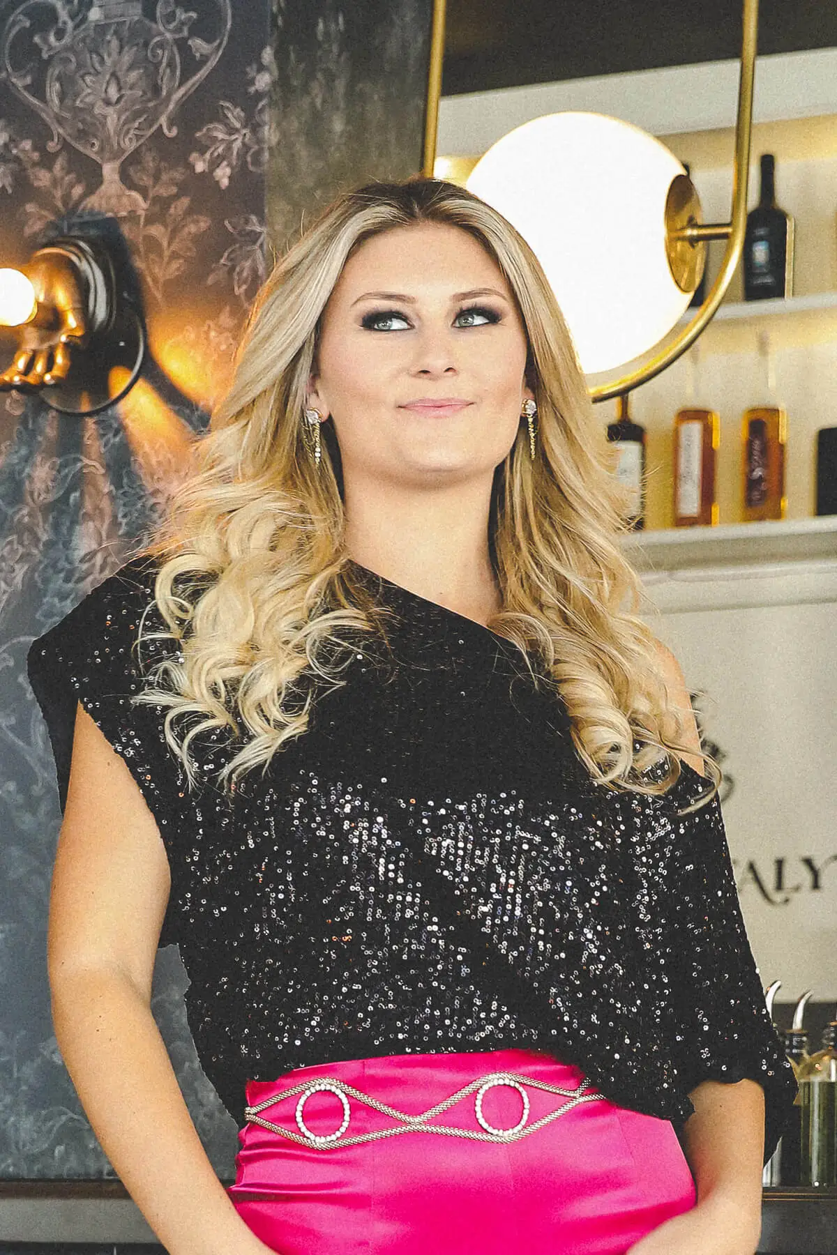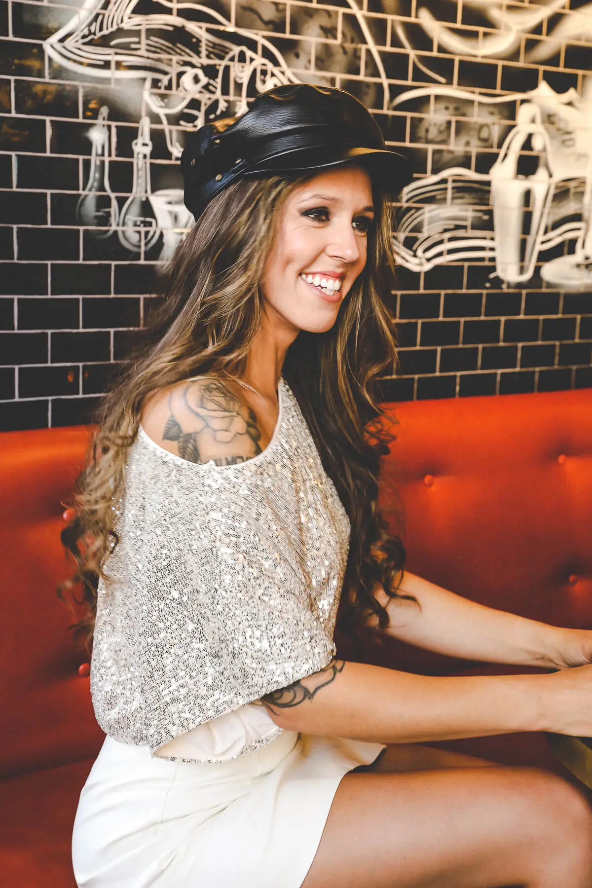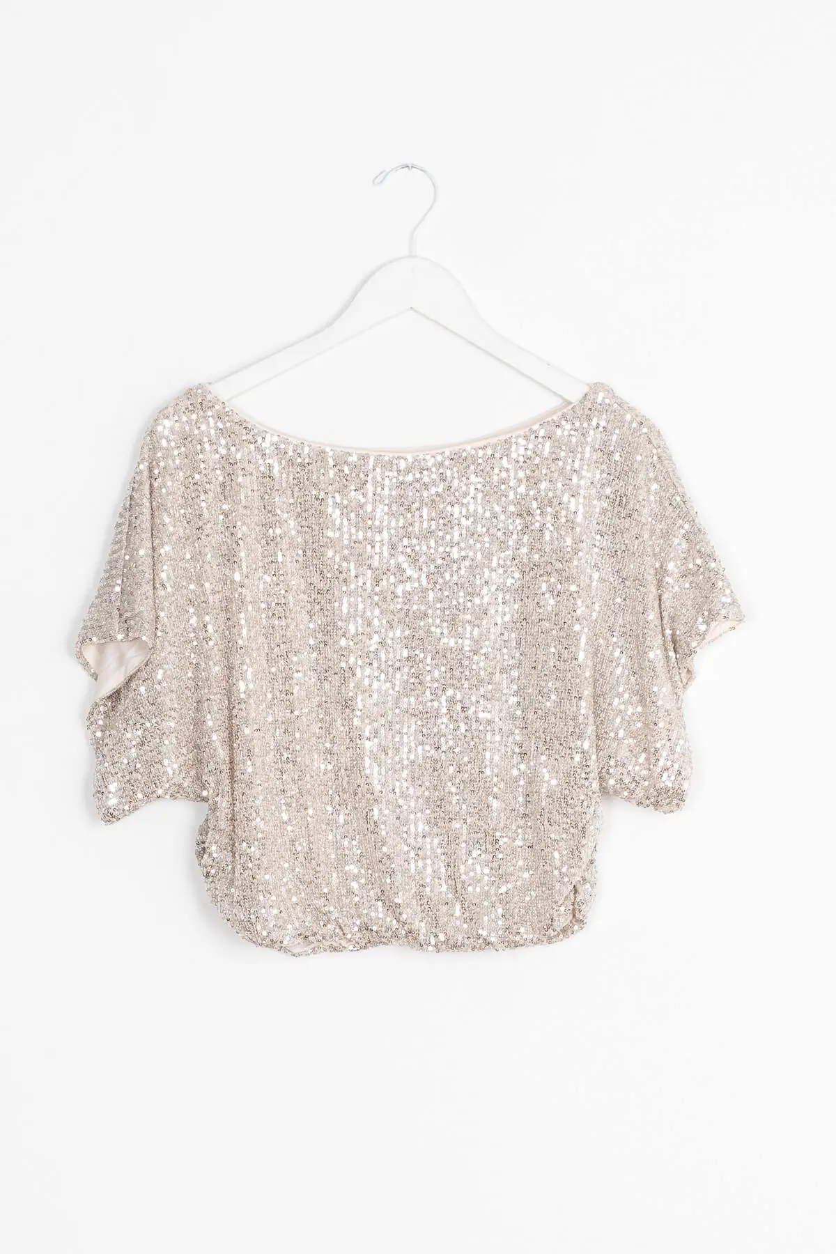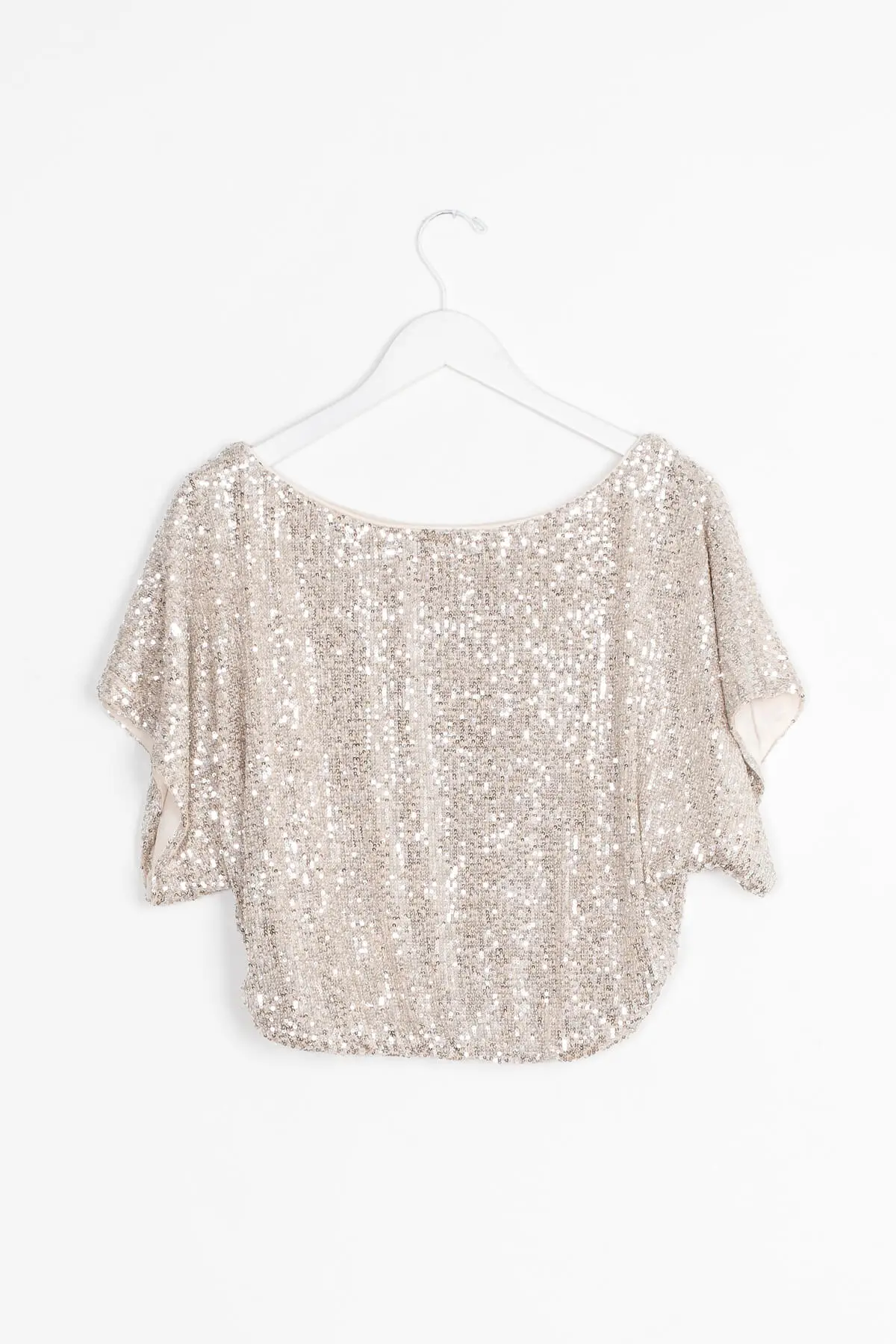 Get ready for your upcoming holiday parties with the Glitz and Glam Top by Kariella. The perfect compliment to the Ring My Bellbottoms Pants, this sequin boat neck top, features kimono sleeves and elastic waistline.