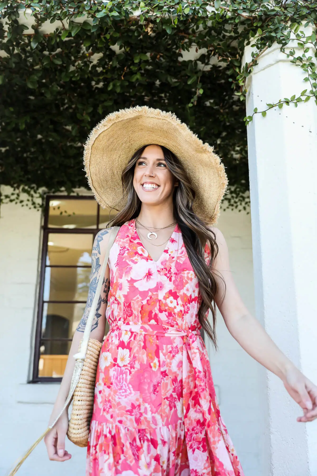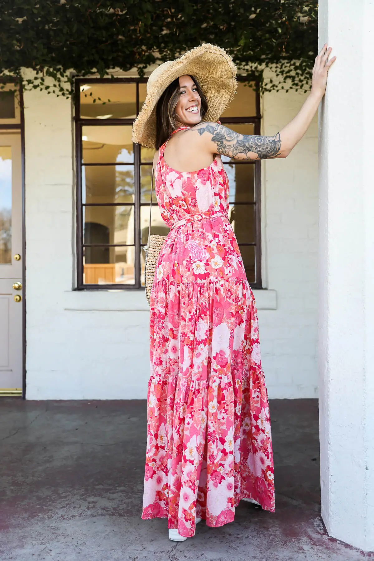 Vacation calling! This hawaiian print maxi dress by Kariella features a tiered skirt, tie waist and a not-too-low v neck cut. Lined to short dress length.