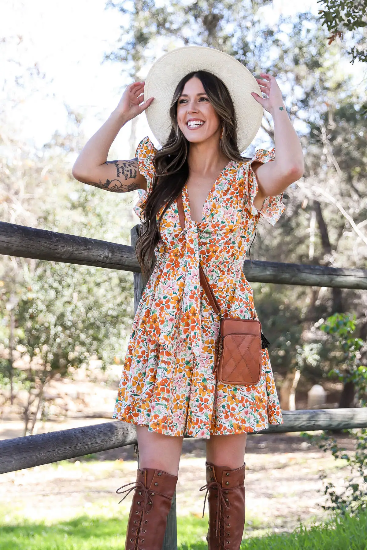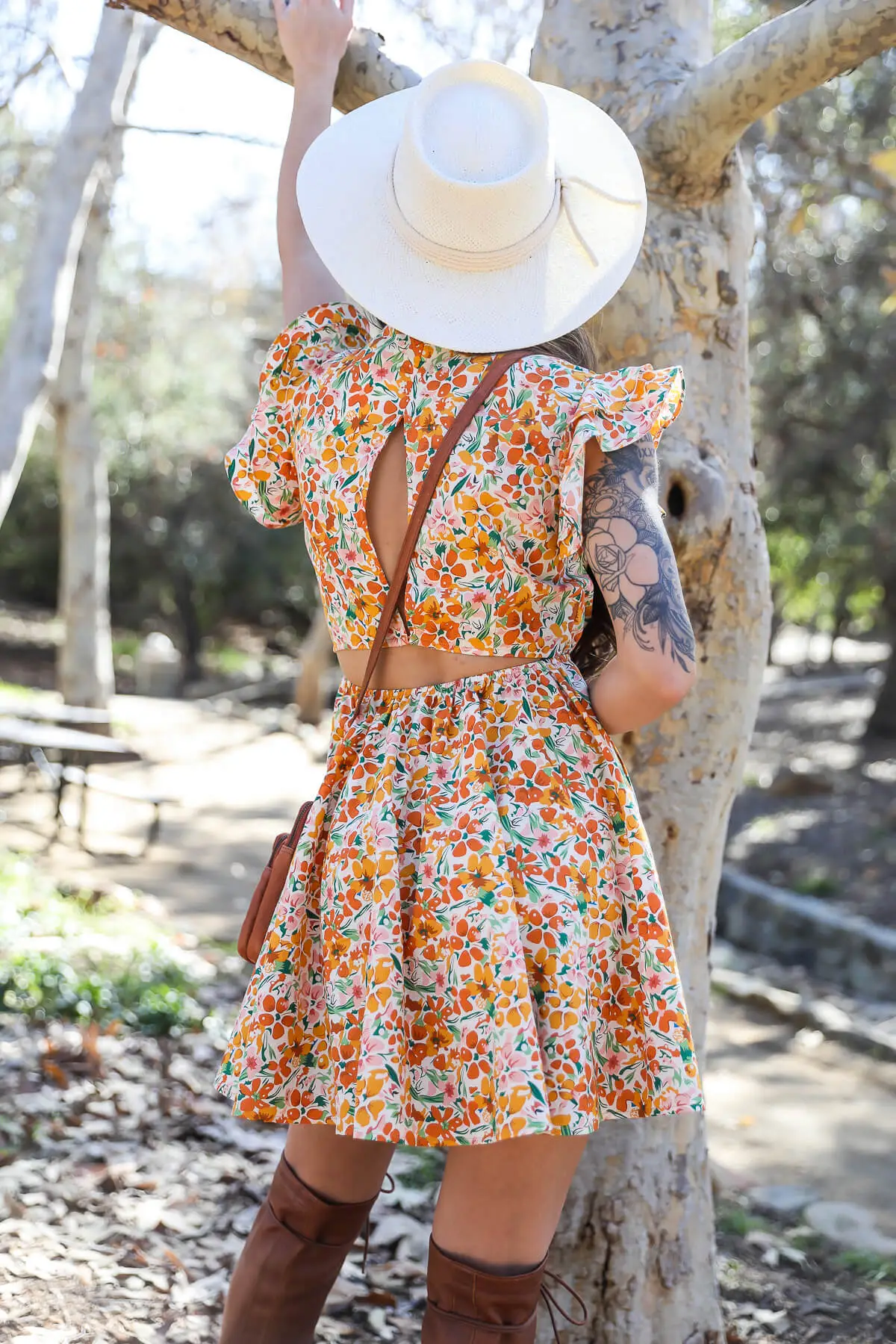 Stroll anywhere in this adorable full circle mini dress by Kariella featuring a tie front, ruffle sleeves and a slit open back waist with a keyhole opening. Did we mention it also has pockets?!