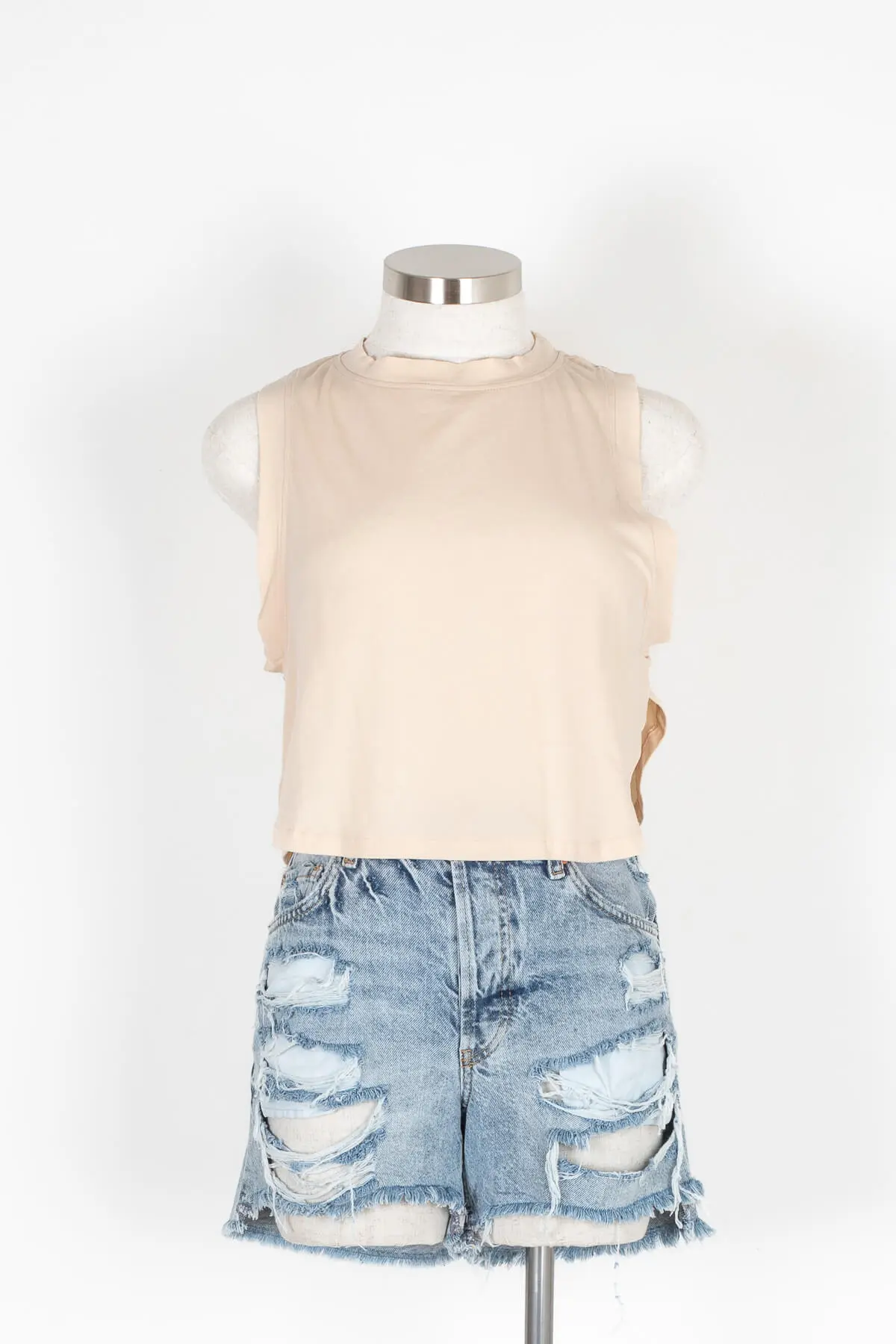 Feel comfortable and carefree in our Playtime Tank. Featuring a loose-fitting silhouette with a high scoop neck. Style with workout leggings for the gym or with shorts for a casual summer look. Perfect for working out, practicing yoga, running errands or lounging around the house.