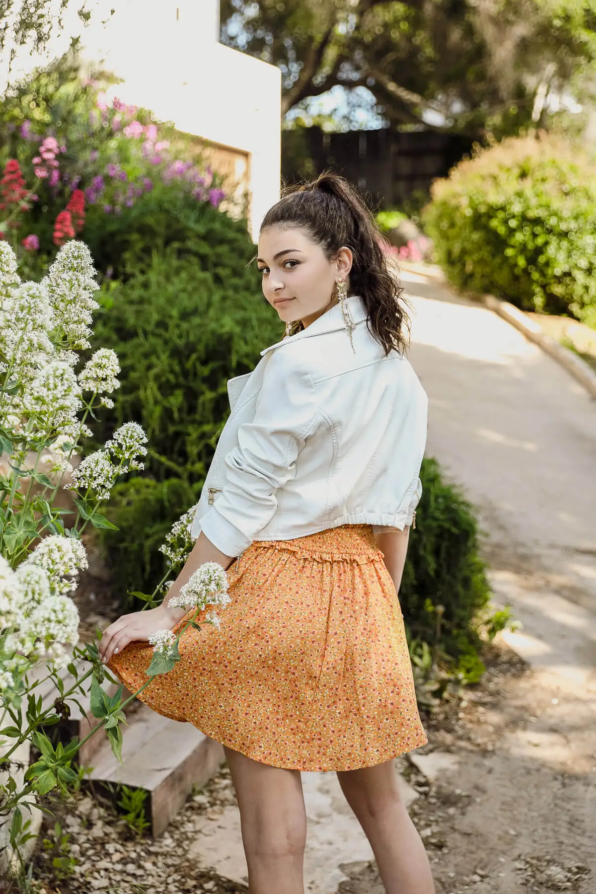 A mini skirt that’s not too mini! Floral print, elastic waist. Love this with a basic white top or tee.