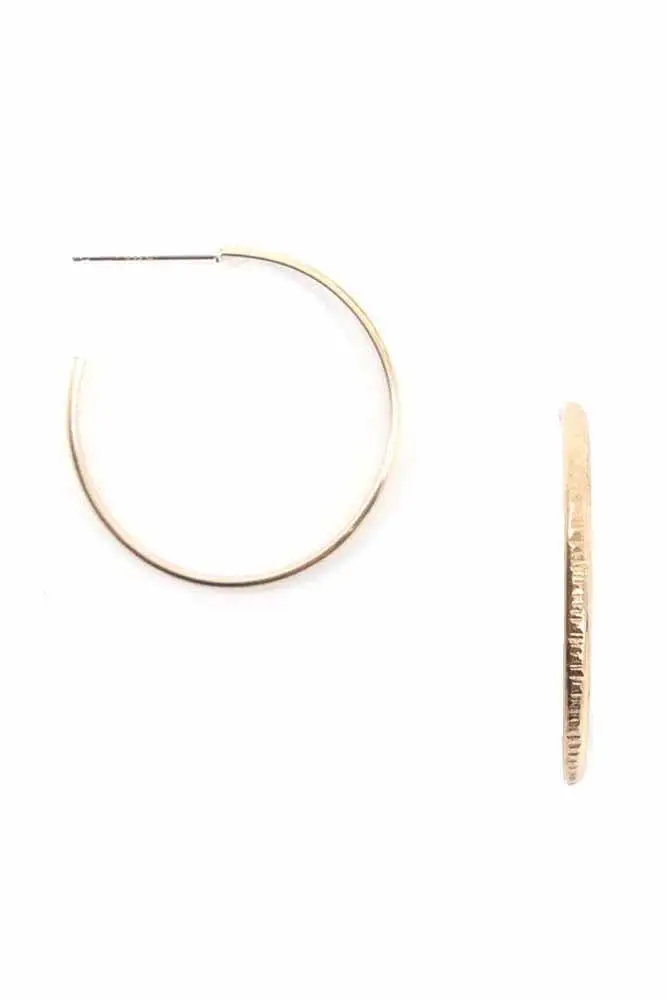 Much like the classic hoop, these hoops have enough texture and detail to stand out. One piece of 14k goldfill half round wire is textured by hand with a line pattern. Hoops are medium size, about 1″ diameter, just enough to fit snuggly around your ear lobe 14 Gauge wire thickness with texture Polished finish.
