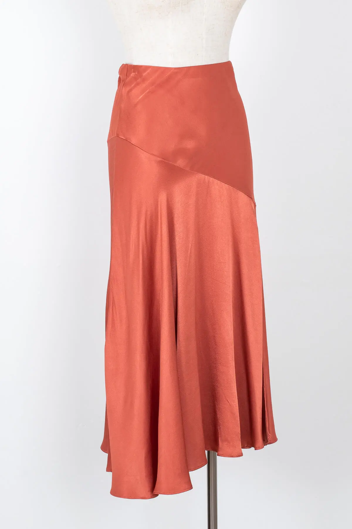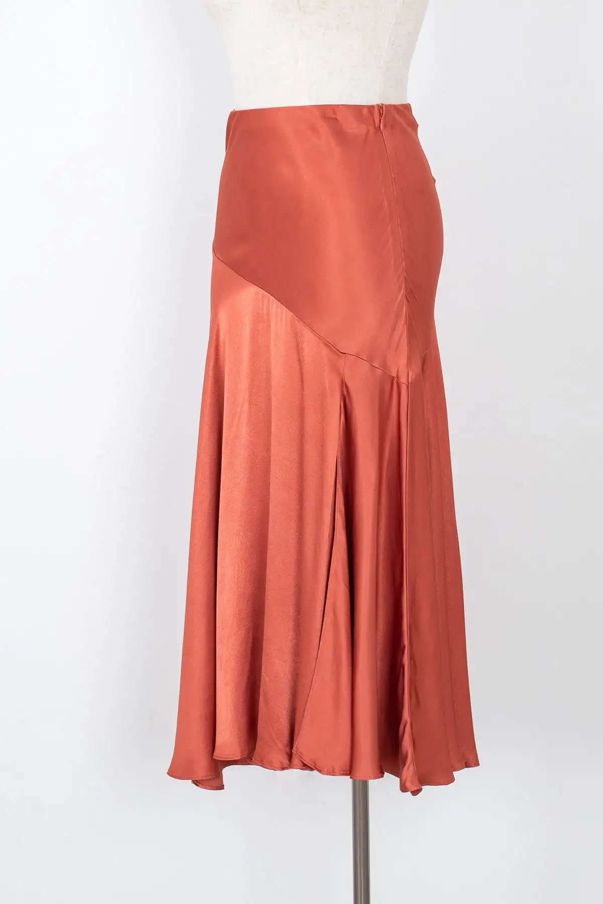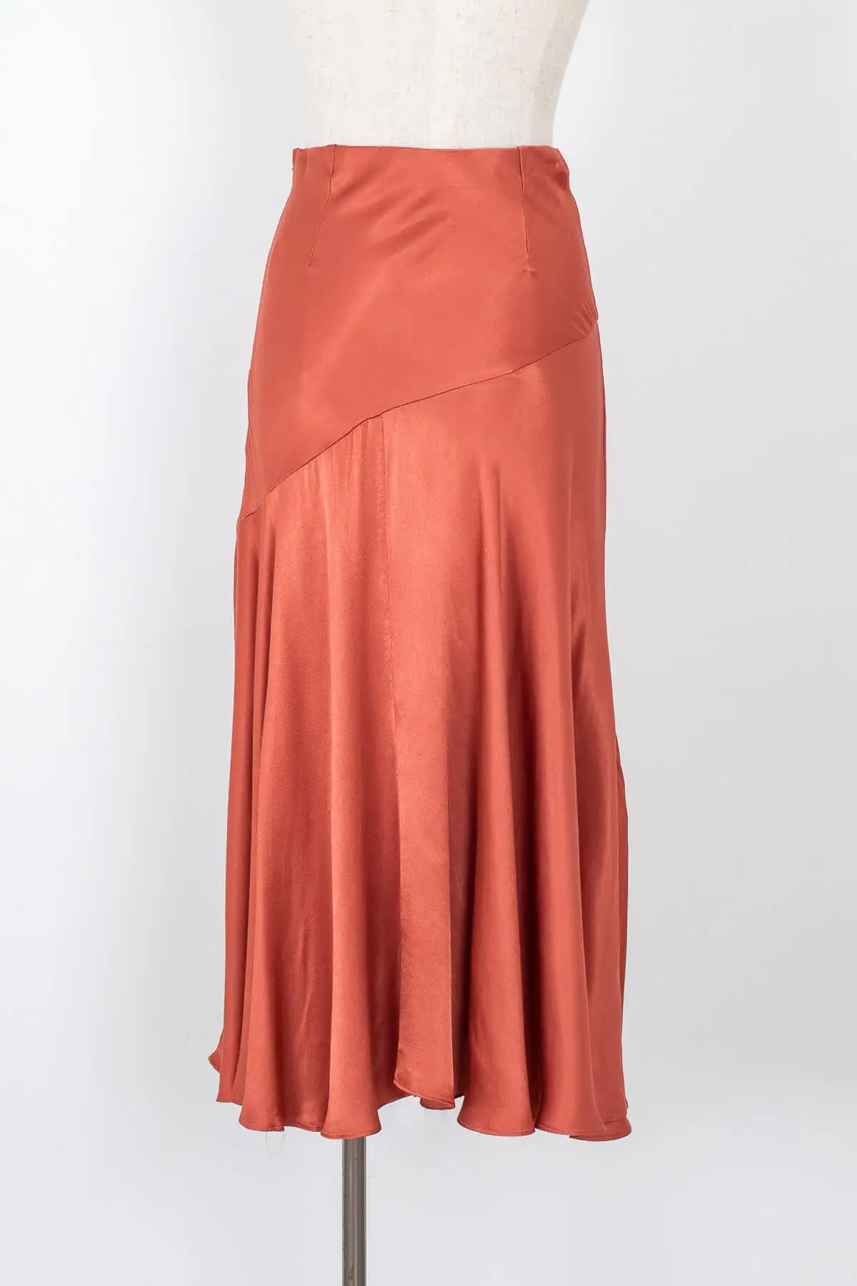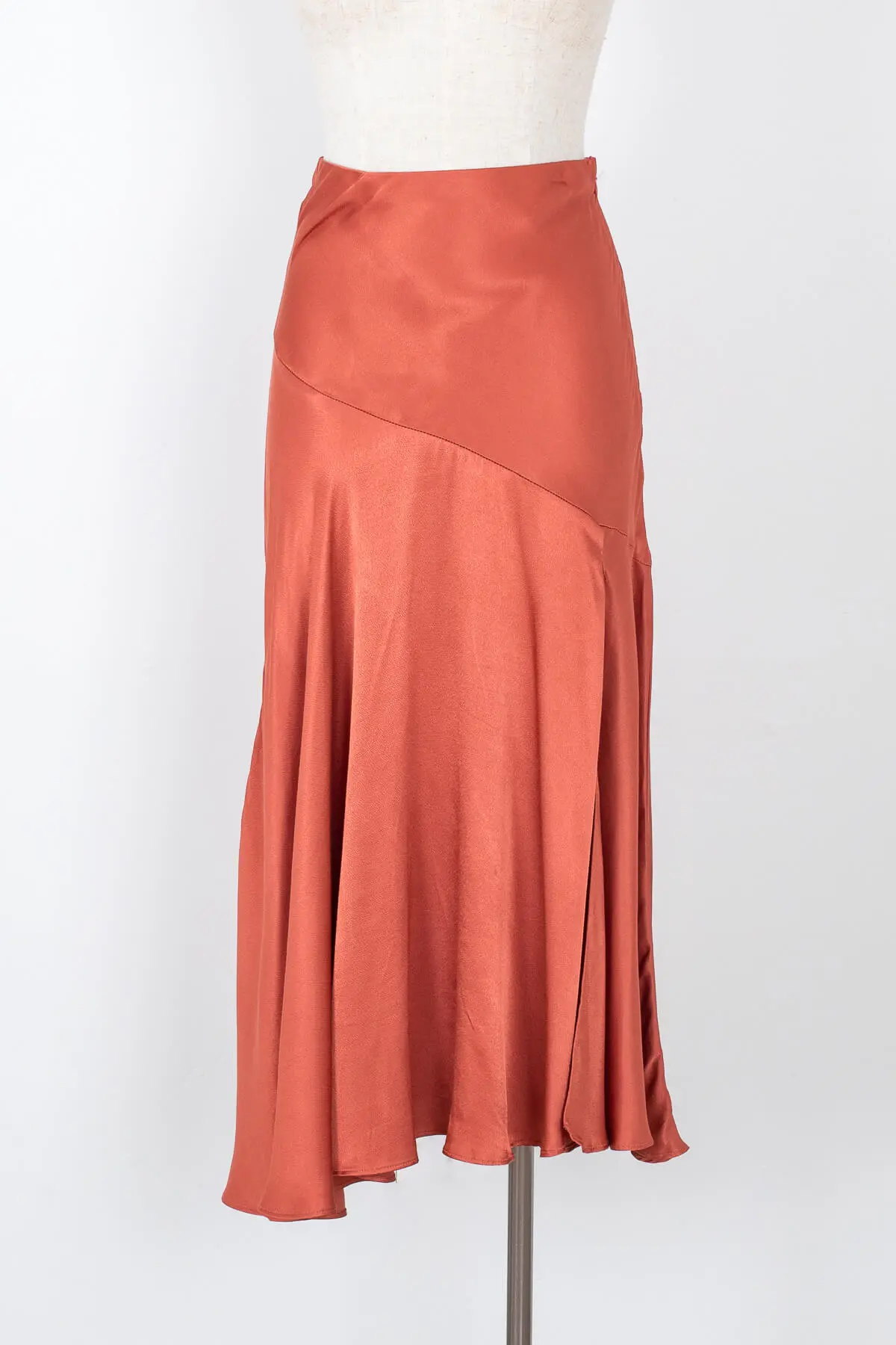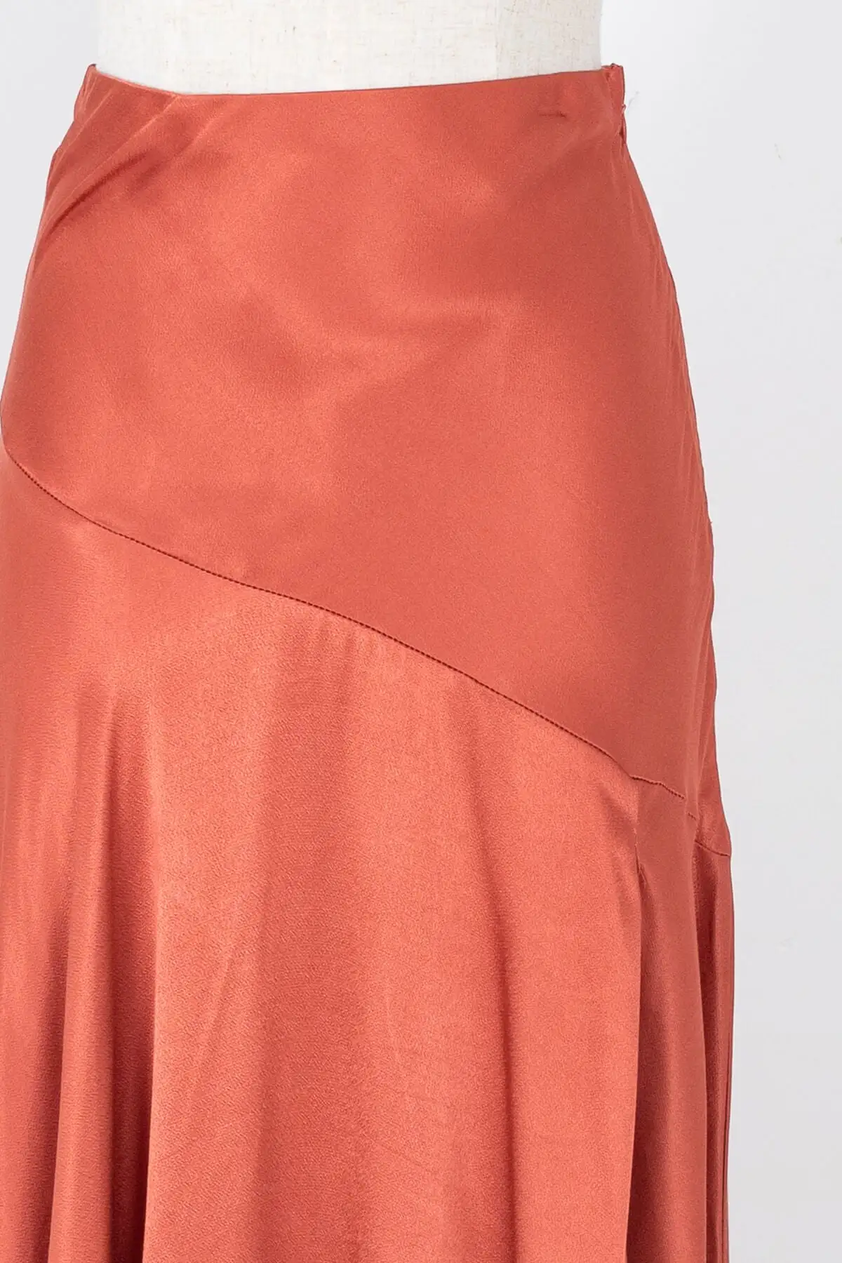 Feel elegantly divine in our That’s Diving Midi Skirt. Featuring a shiny rust color on satin material with an asymmetrical silhouette with a side zipper and a side leg slit. Style with a crop top and sandals to complete this elegant summer look. Perfect for summer parties, date night or going out with friends.