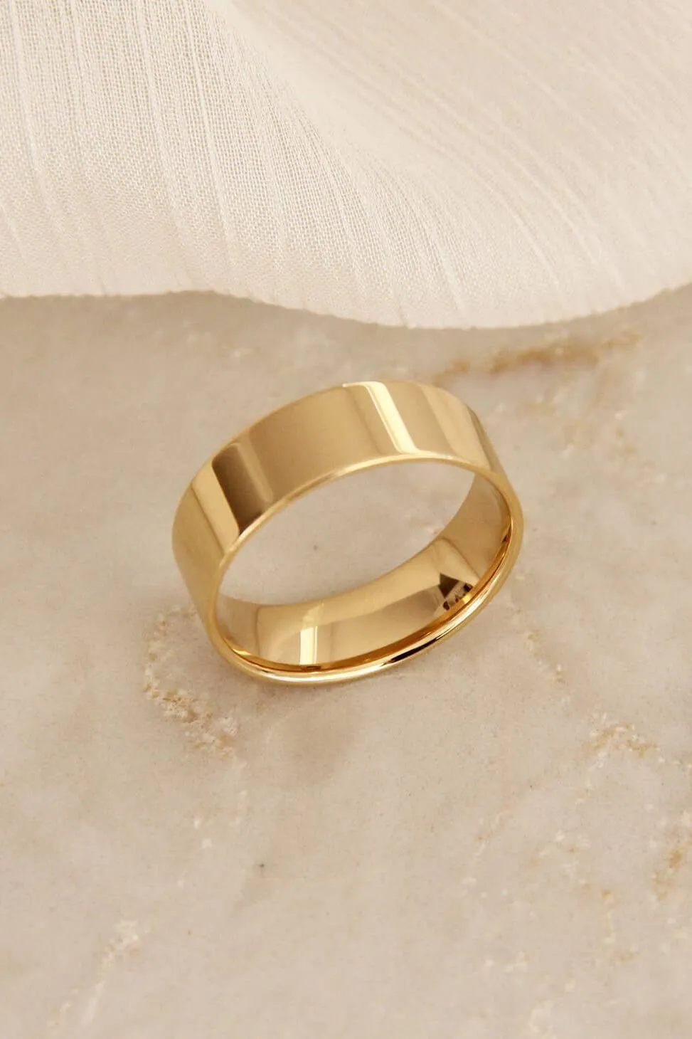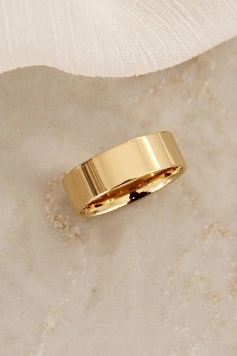 The Lana Band by Maive features a smooth 6mm wide band made with 18k gold.
