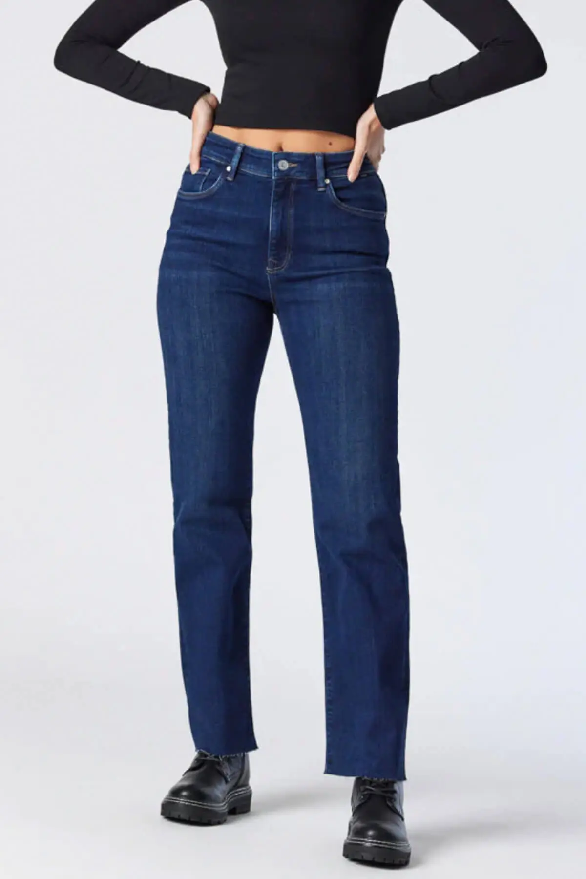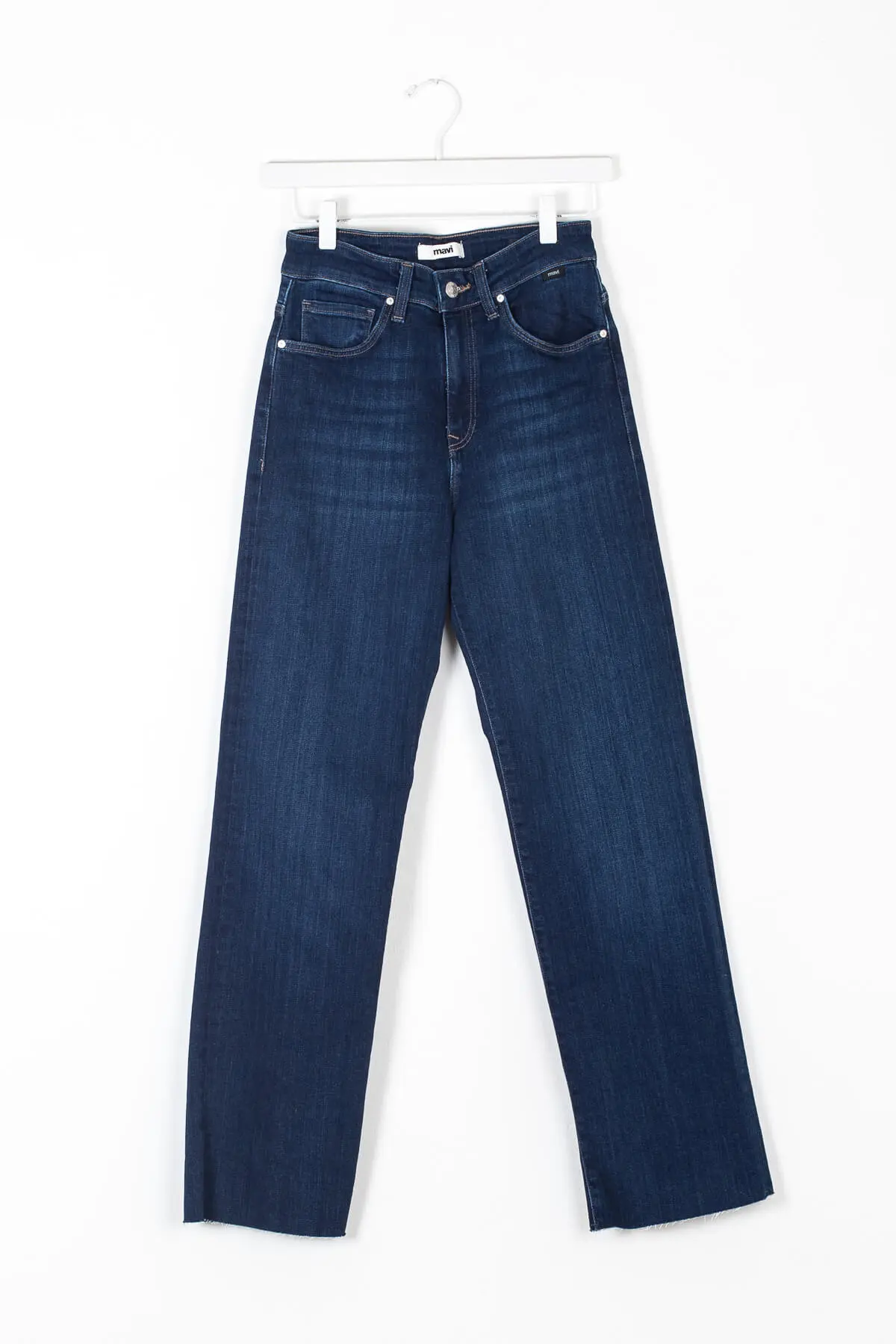 Give it to ’em straight in the Barcelona Straight Jeans by Mavi. These high waisted jeans feature a loose straight leg, raw edge hems, and cool deep blue color. A comfortable and classic pair of jeans to add to your collection of go-to pieces.