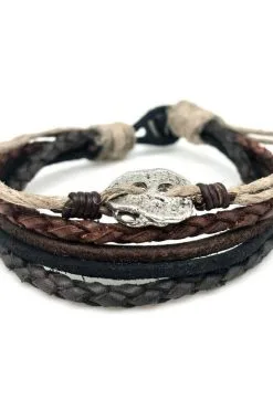 Anju Jewelry Aadi Pewter Disc Brown Leather Bracelet