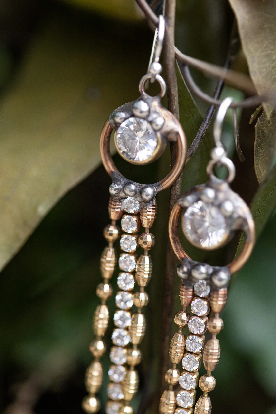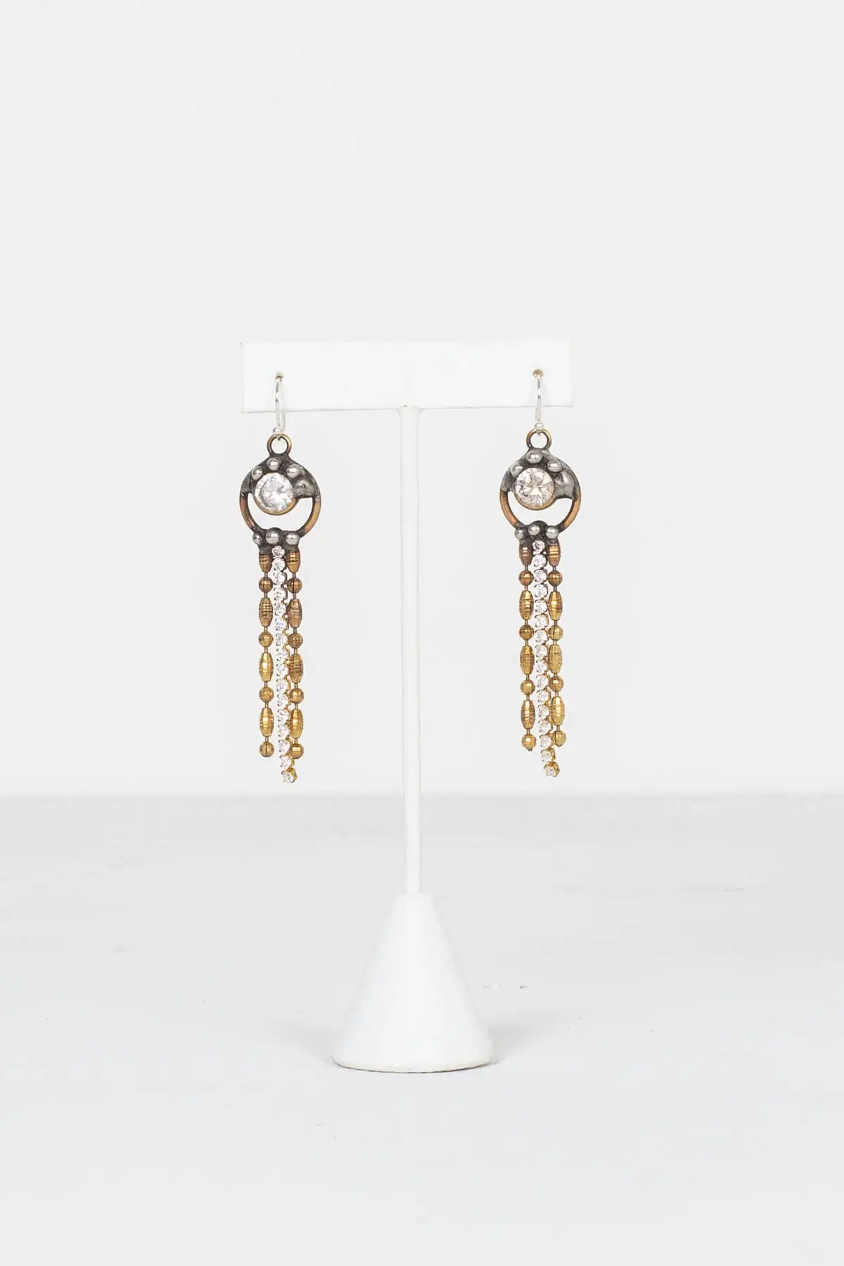 These stunning beauties by Mikal Winn are to die for! The Brass Zicron + Rhinestone Fringe Earrings feature a breathtaking rhinestone fringe chain that will for sure shine in the sun!
