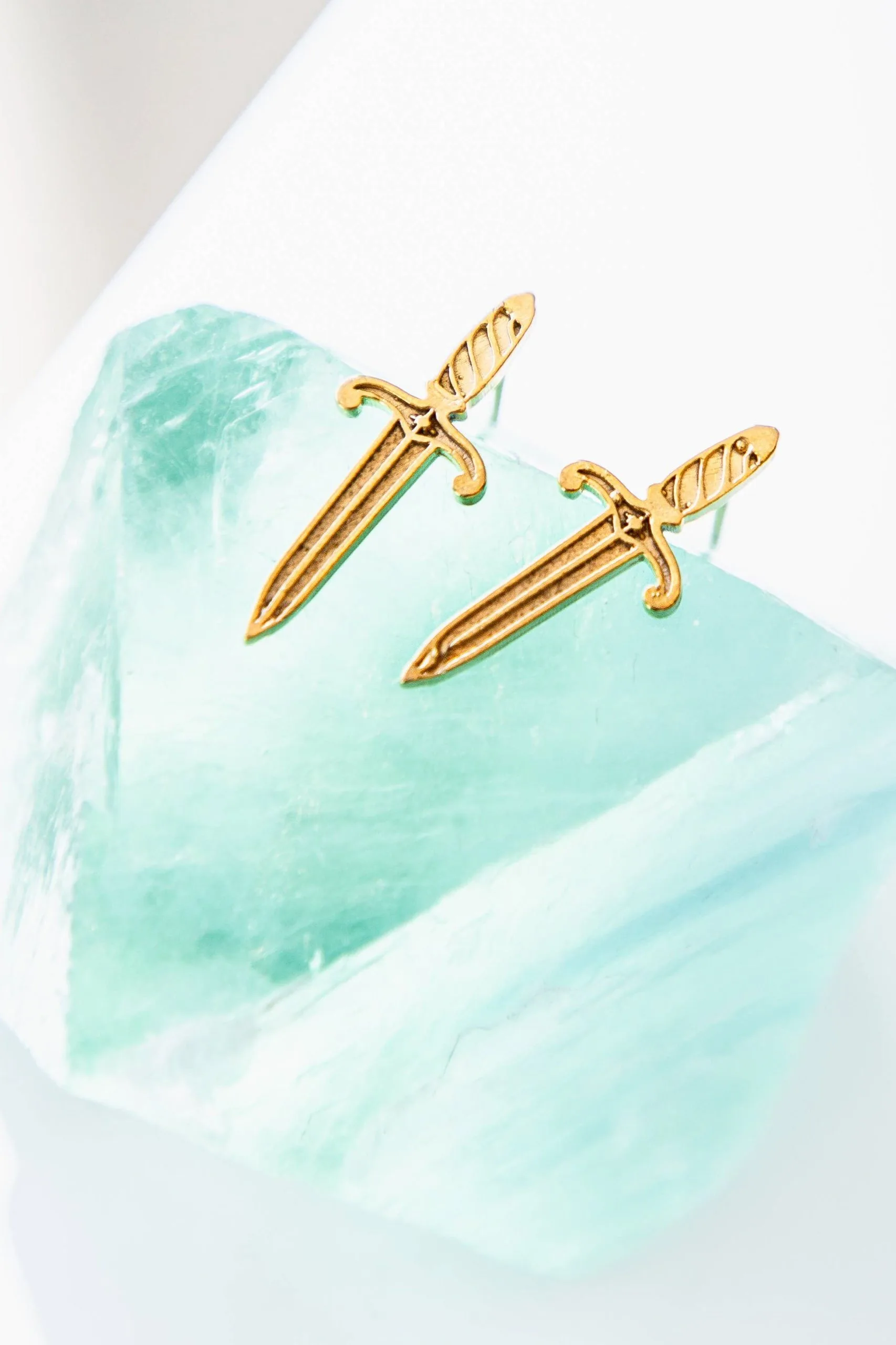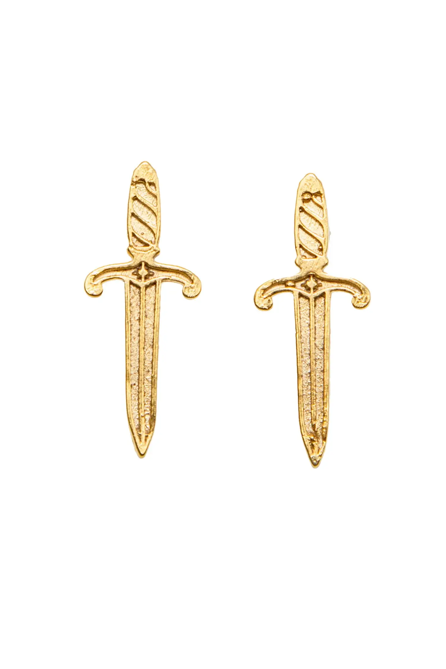 Add some edge to your look with The Dagger Stud Earrings by Mineral And Matter. These dangling daggers are about an inch long and cast in brass then plated in 18K gold.