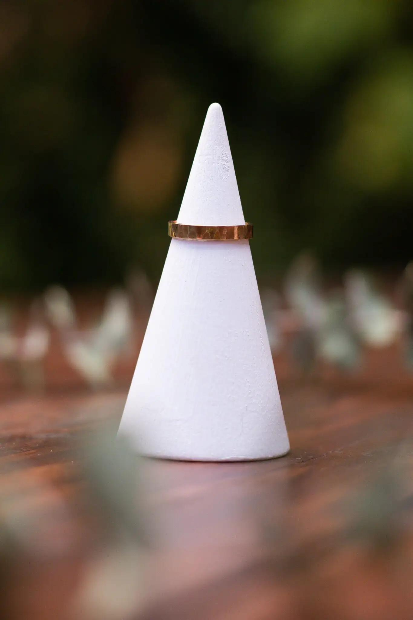 The wide hammered stacking ring is the perfect piece to add to your own stack or a great way to start your collection! This standout ring is 3mm in width and hand forged in 14k goldfill.