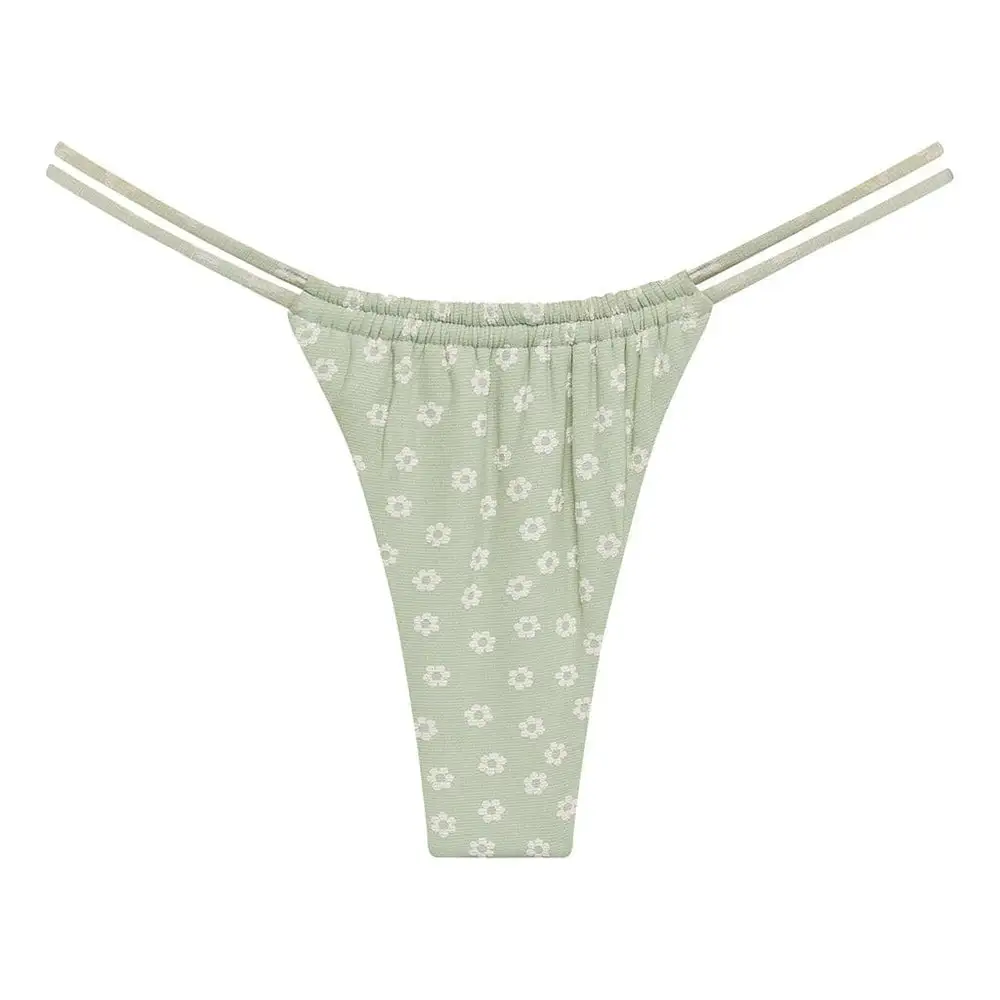 The newest and sexiest bikini bottom from Montce Swim, the Jade Floral Brasil Bottom features a double strap and ruched detail that is perfect for avoiding tan lines.