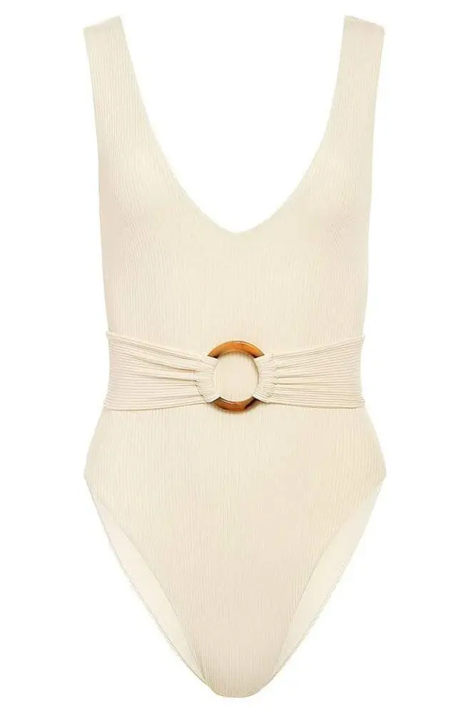 The Kim One Piece by Montce is a sexy ribbed one piece with light compression, medium support, and thick straps for added comfort. The high cut legs and the removable faux tortoise loop belt elongate and accentuate your shape.