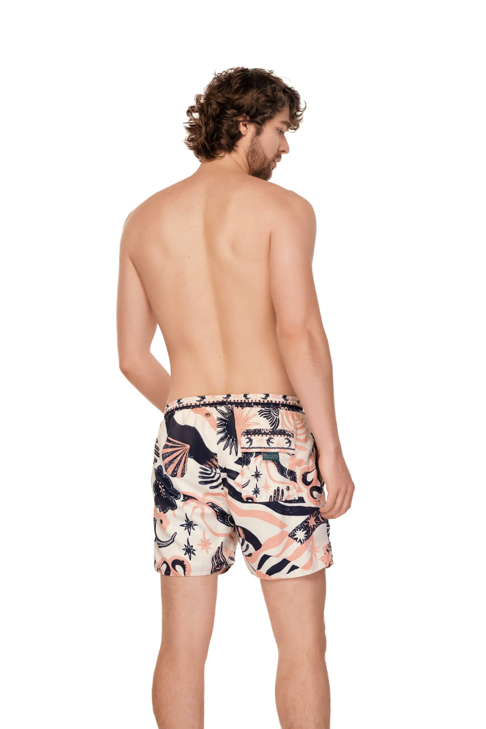 Suit up in Ola Azul’s Luka Oracle Swim Trunks. These swim shorts feature an elastic waist and side / back pockets in a fun tropical print. The best part? There’s a matching suit for your lady! Shop the Oracle Collection here.