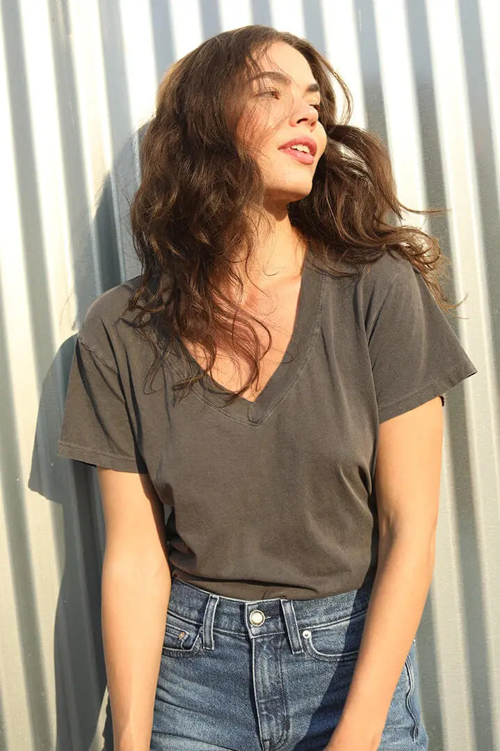 The Hendrix Basic VNeck by Perfect White Tee is the essential your wardrobe needs. Slightly oversized, mid rise length, and just sexy enough to be your new favorite tee.