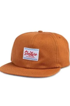 This unstructured 5 panel hat by Sendero is made from a brushed twill fabric with an easy curve visor and snap back.