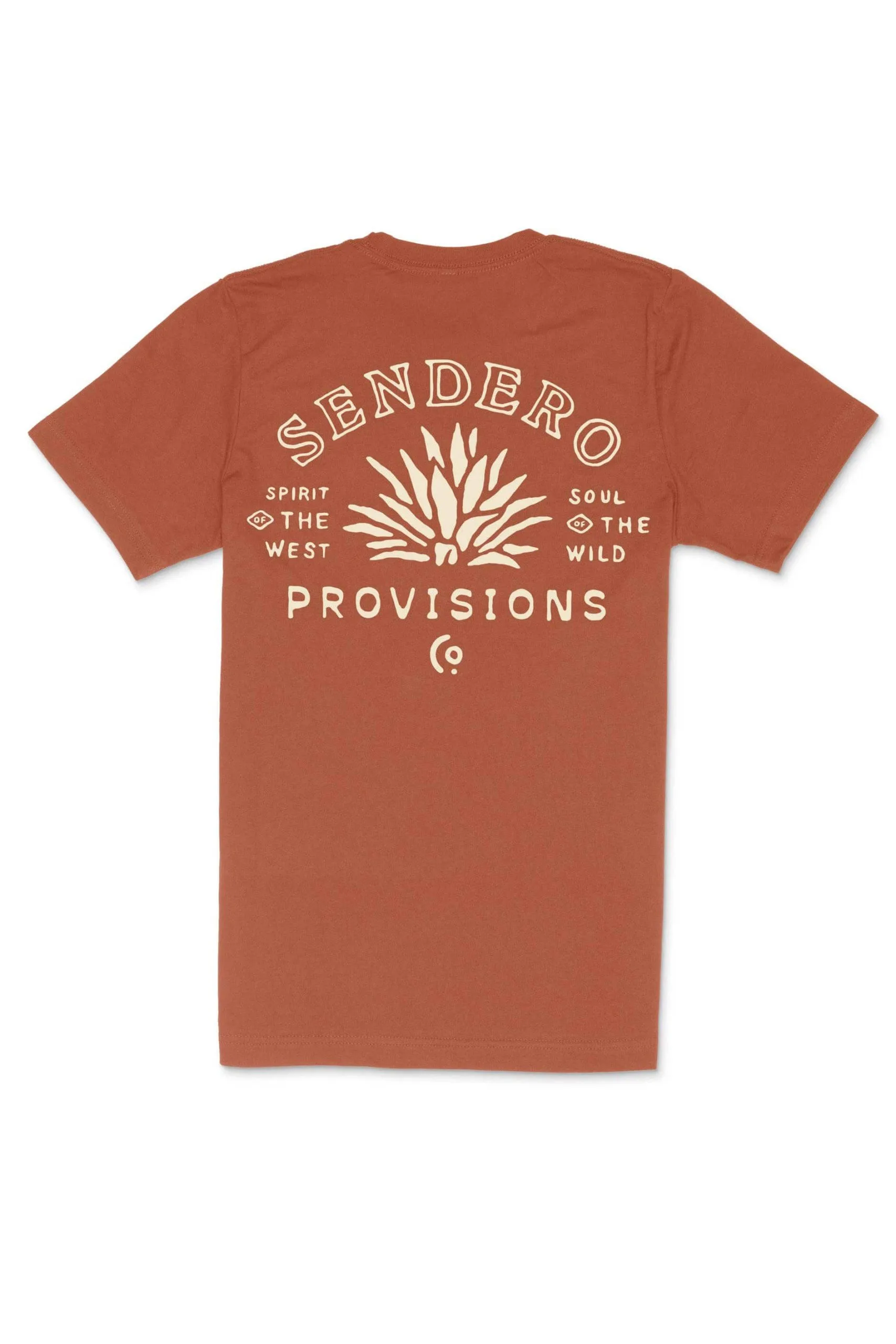 A classic tee by Sendero! Just what your guy needs. This cotton blend tee has a soft touch screen print with an agave logo design.