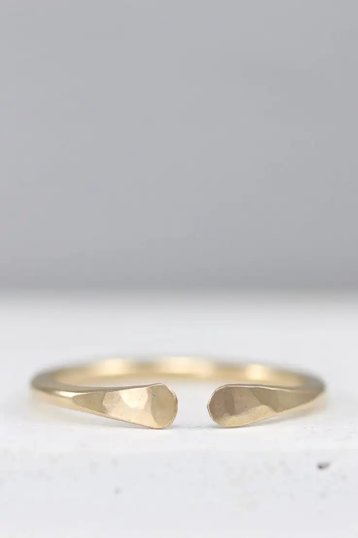 A simple toe ring by Sloane Jewelry Design. Adjustable in the back for one size fits most. It has a slight hammered texture for extra sparkle. Band is about 1mm wide.