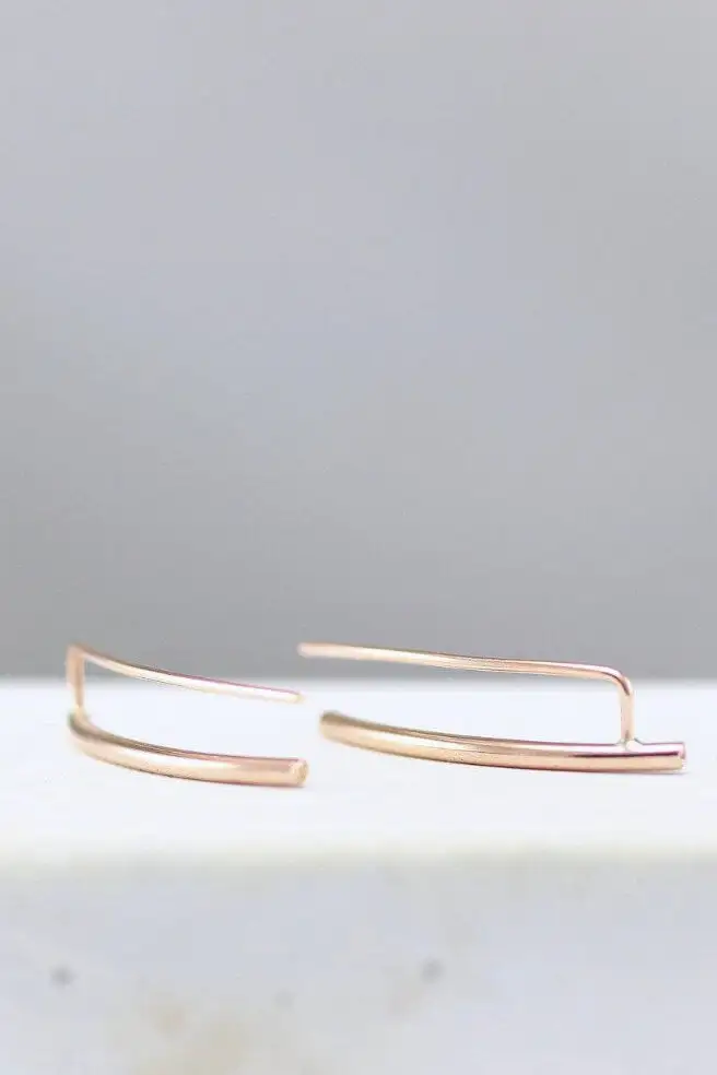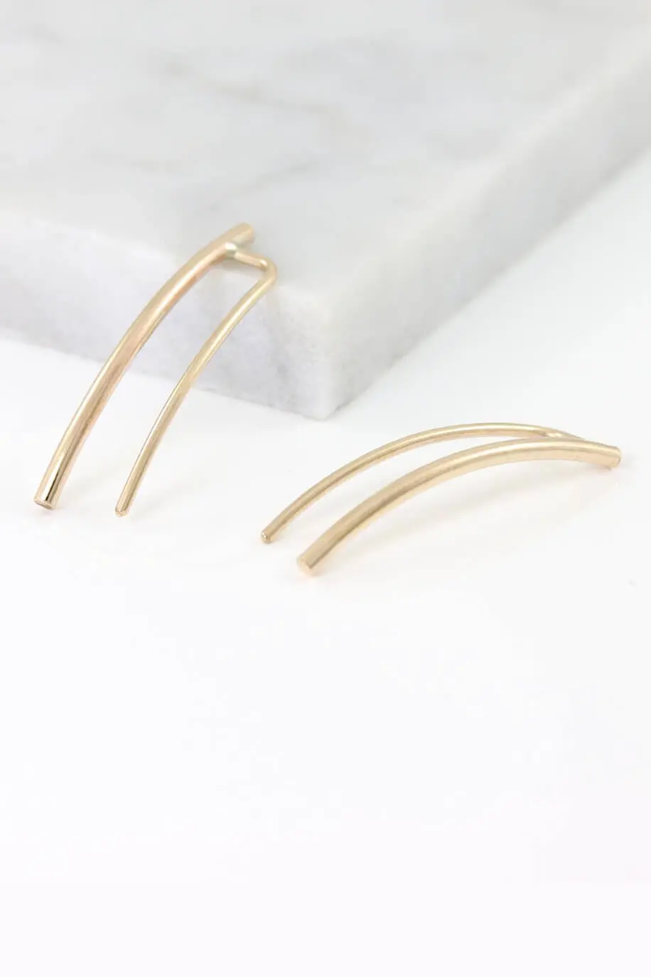 Cute, trendy and from Sloane Jewelry Designs! These gold earrings slide in like a post earring and fit to contour to the shape of your ear. They have a modern vibe and are a super easy statement.