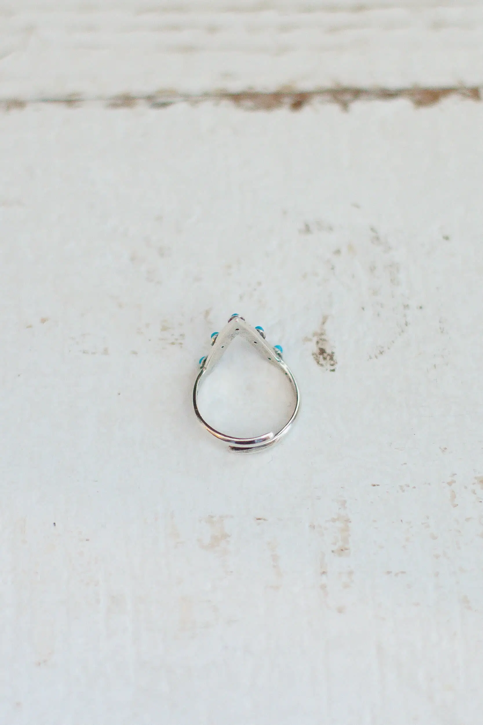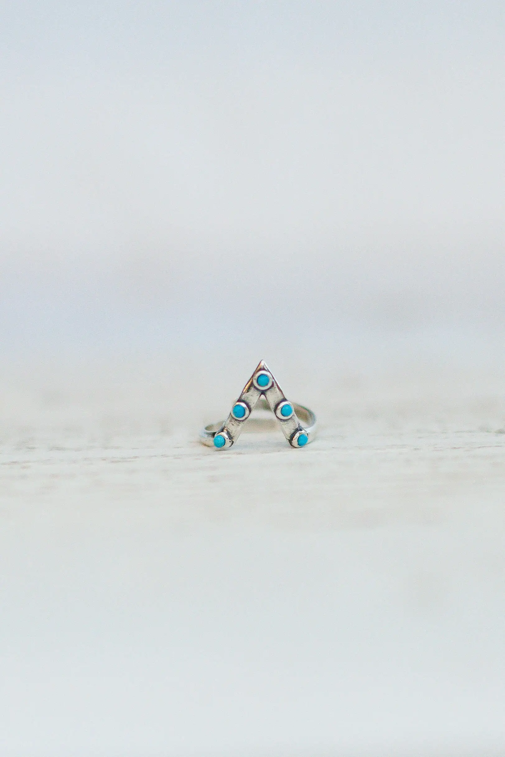 This handcrafted open triangle shape ring from Sowell Jewelry features 5 beautiful turquoise stones set a top oxidized sterling silver.The adjustable band allows you to wear on any finger.