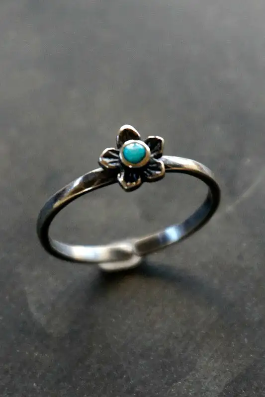 This handcrafted sterling silver ring from Sowell Jewelry features genuine turquoise.