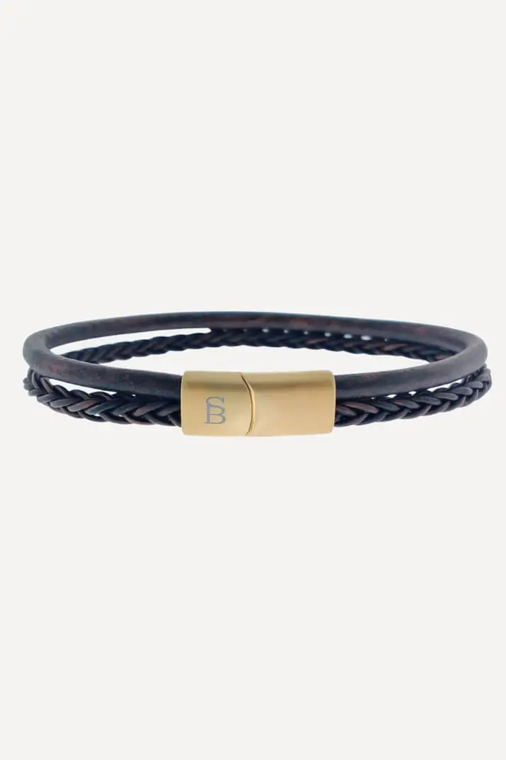 The Gold Denby leather bracelet is a stacked duo made from fine buffalo leather.