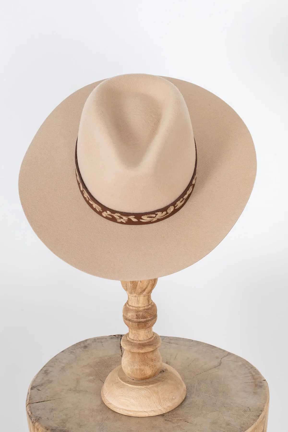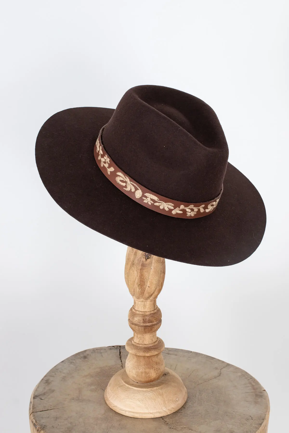 Constructed with the finest 100% Australian wool felt, our Liam is an elevated take on the classic fedora. Its pinched crown and wide brim are adorned with a genuine leather band embroidered with an ornate hawaiian pattern.